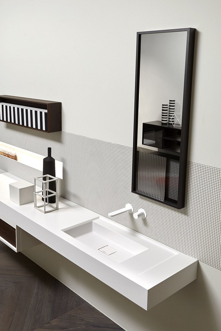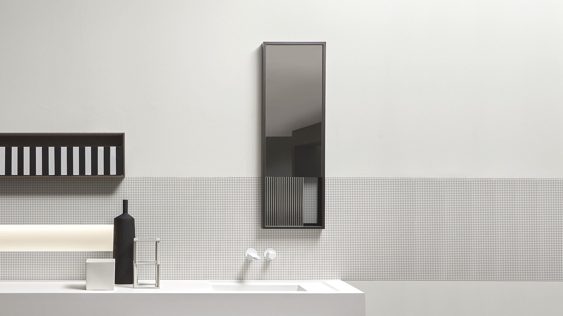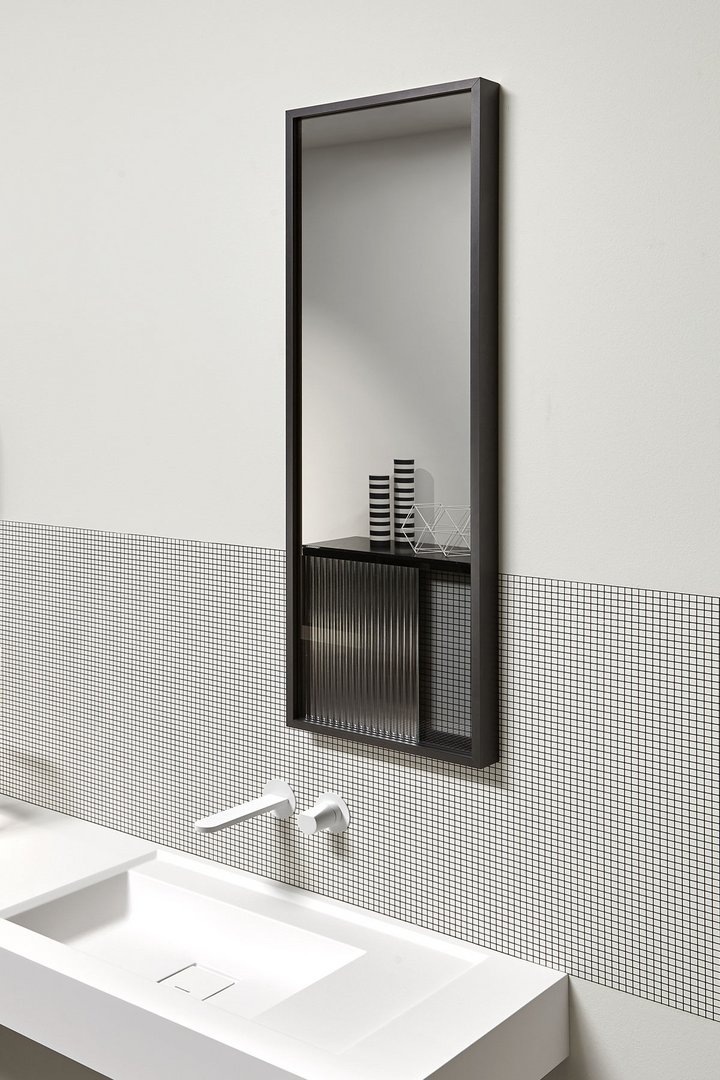 Tratteggio 是由不同飾面的玻璃板重疊產(chǎn)生的鏡子系列,銀色、銀色凹槽和透明煙熏,產(chǎn)生不同的情感和新的感覺。一系列的玻璃層通過它產(chǎn)生不和諧、透視、反射和前所未有的視覺,這個項目豐富了反射表面,賦予能夠與空間和光交流的元素生命。