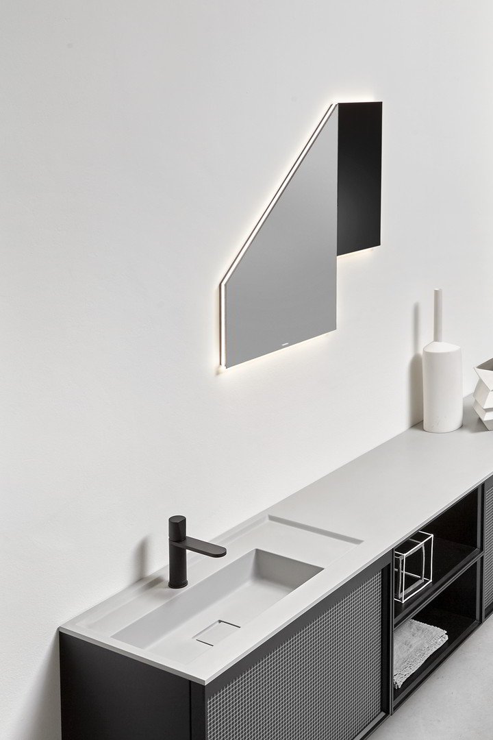 鏡子上有一張折疊紙的原始圖像,折紙以反光鏡和黑漆折痕之間的對比為標志。褶皺定義了缺席,同時定義了運動。因此,鏡子成為墻壁不可或缺的一部分,墻壁撕裂形成一個黑色的空間,顯然是空的,就好像我們可以看到遠處一樣。介于現實和想象之間的作品“你自己的形象被限制在被認為是真實的和內部的東西之間。” – Gumdesign 的設計師 Laura Fiaschi 和 Gabriele Pardi 的評論 - “產生反射的假想折疊”。