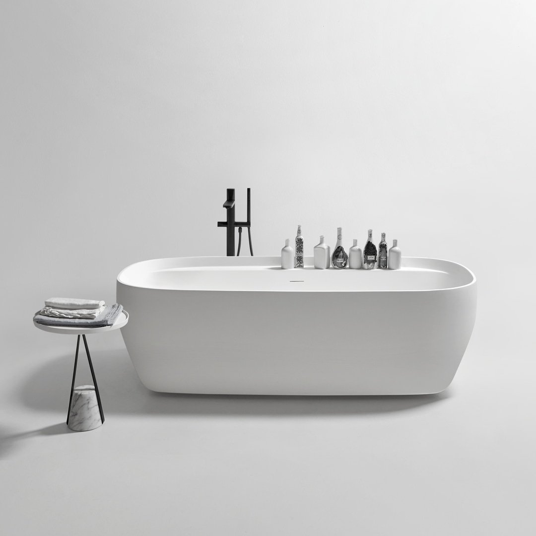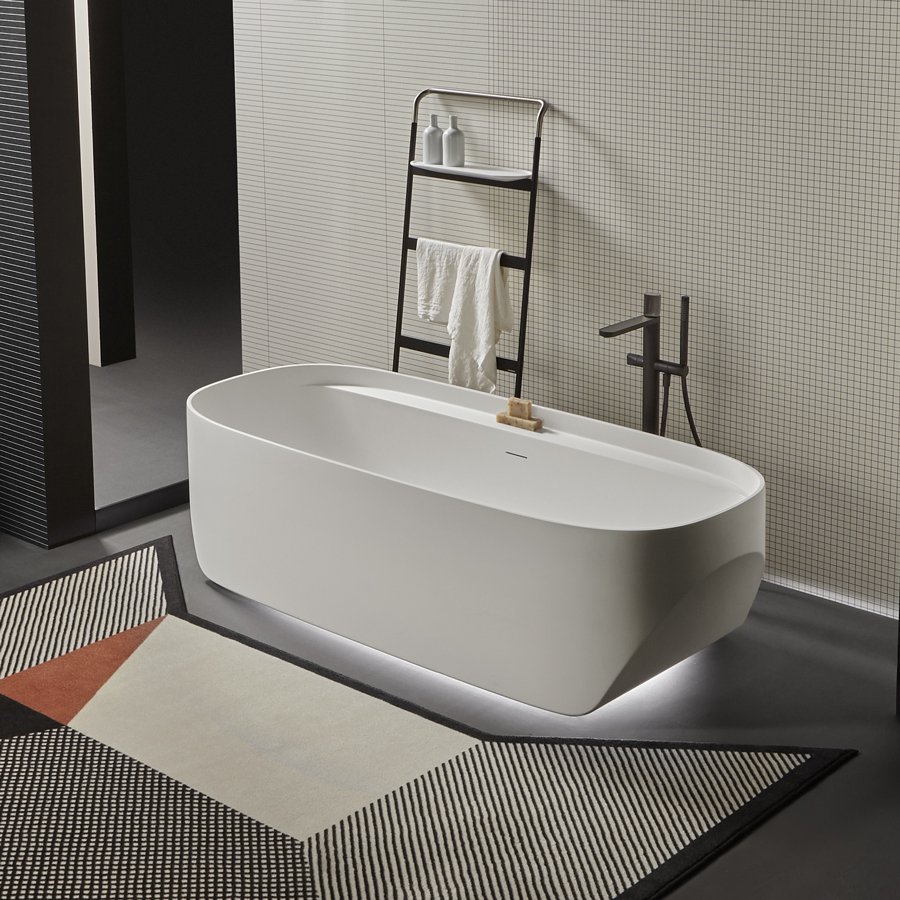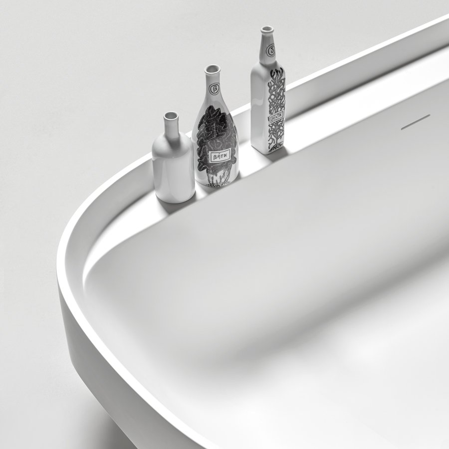 正是這個低邊緣支撐著大體積,成為一個實用的支撐表面,可以在上面存放身體護理所需的物品。最終定義浴缸整體形象的功能性細節(jié),賦予形狀動感和活力。