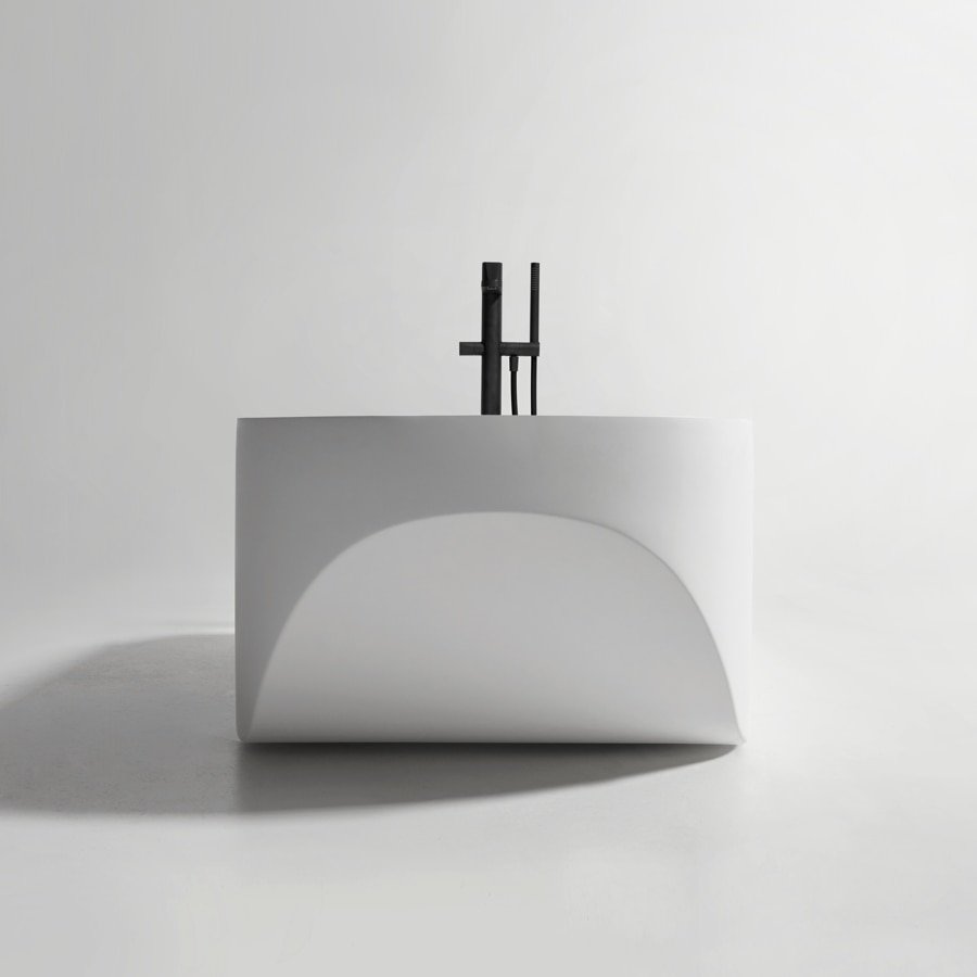 Sled 是一個獨立式浴缸,由一個完美的幾何形狀轉(zhuǎn)變而成,通過兩個對角線切割來剖析盆的深度,以及一個沿著寬度周長的切口,仿佛在測量邊緣的縱向發(fā)展。