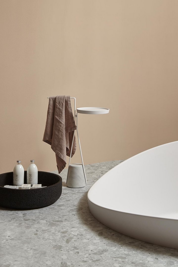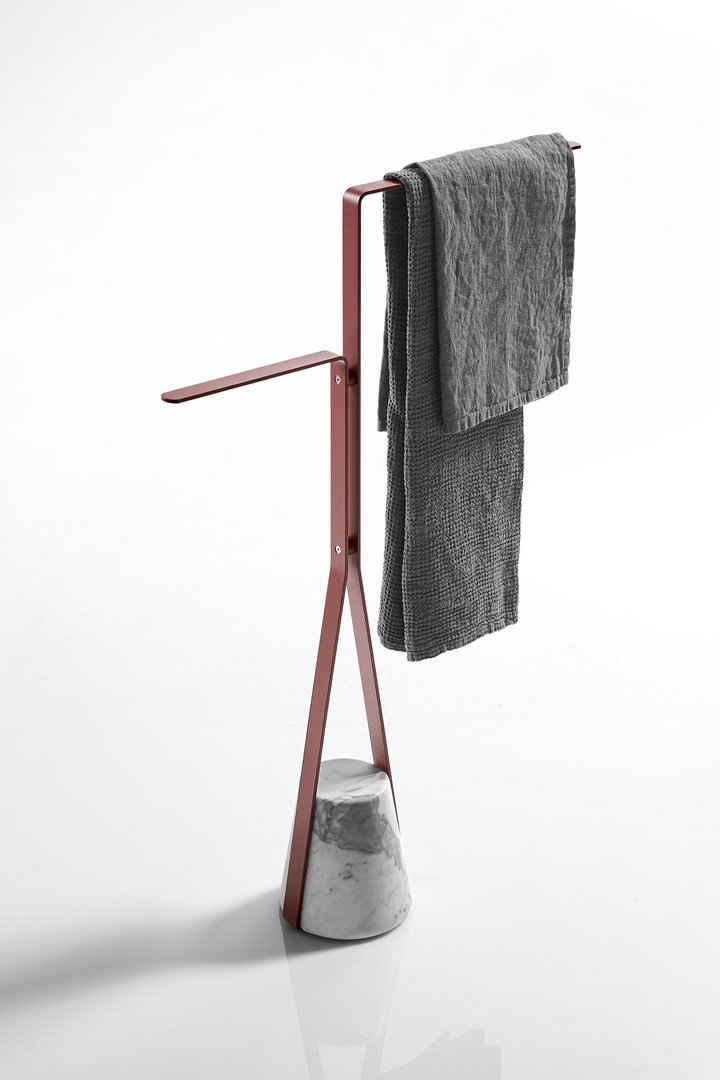 底座的材料特性,結構所描述的優雅路徑,結合在一起以實現平衡,這種平衡源于懸停在空中的愿望與反對它的重力之間的對比,將其固定在地面上。就像一個被向下拖拽的橡皮筋,但它隨后會遇到阻力和一致性,進而成為支撐。Halo 是一系列獨立的配件和桌子,重新定義了浴室內日常使用的功能元素的形象,但也可以用于房子的其他房間。