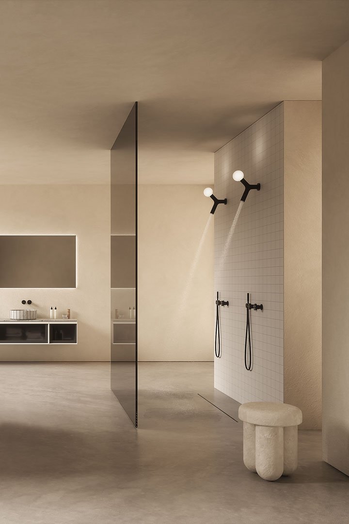 淋浴噴頭由管狀線條組成,顛覆了現有淋浴噴頭的范式,而可以采用各種形式的燈在阿波羅中被概括為一個圓形球體。因此,Apollo 是一種光源和水源,讓淋浴體驗特別愉快:讓自己被原始的光雨所淹沒,這創造了一種輕松的氛圍,這也歸功于所產生的視覺舒適度,創造了一種整體體驗滿足多重感官。