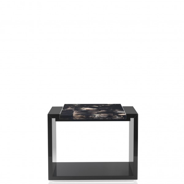 A superb blend of fine materials and impeccable craftsmanship, the Essenziale side table will pair perfectly with elevated interiors. Featuring a clean lined structure in polished black lacquered wood, this design is added genuine beauty by an exquisite tabletop in dark horn, sporting infinite color variations. Complete with considered details in chromed brass, this side table will be a functional, chic accent for any setting.