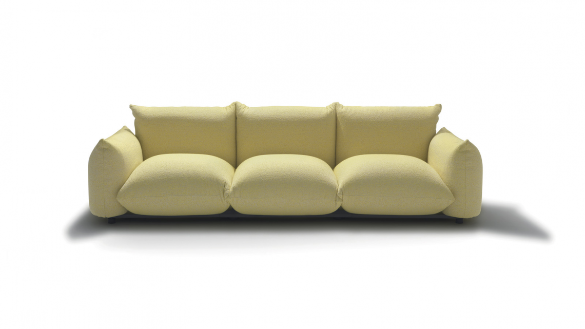 Linear sofa with soft, rounded shapes, which can be used to furnish both residential and hospitality verandas.