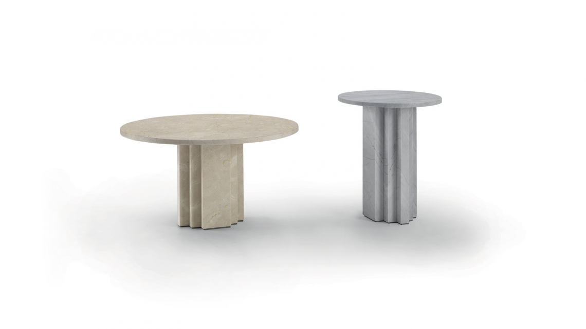 With a design entirely inspired by its material, its thin round top is contrasted by a sculptural scaled base - an intentional and marked design detail