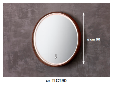 Specchio 5 mm bordo filo lucido con cornice in FRASSINO laccato finitura Cotone, Canapa, China o NOCE CANALETTO NATURALE. Illuminazione perimetrale frontale a led, trasformatore 220/12V ed interruttore sensor frontale. Completo di telaio.