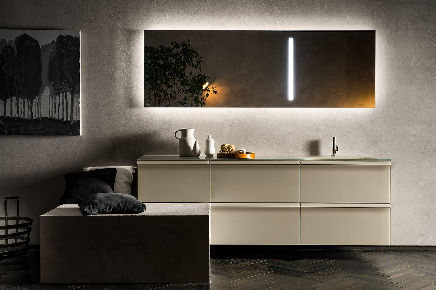 Riga è il parallelepipedo rigoroso reso dinamico dalla maniglia. Verticale ed orizzontale, in vetro colorato o legno, la nuova maniglia è l’elemento distintivo di una collezione che resta fedele alla tradizione Artelinea nella ricerca di versatilità ed estrema componibilità.