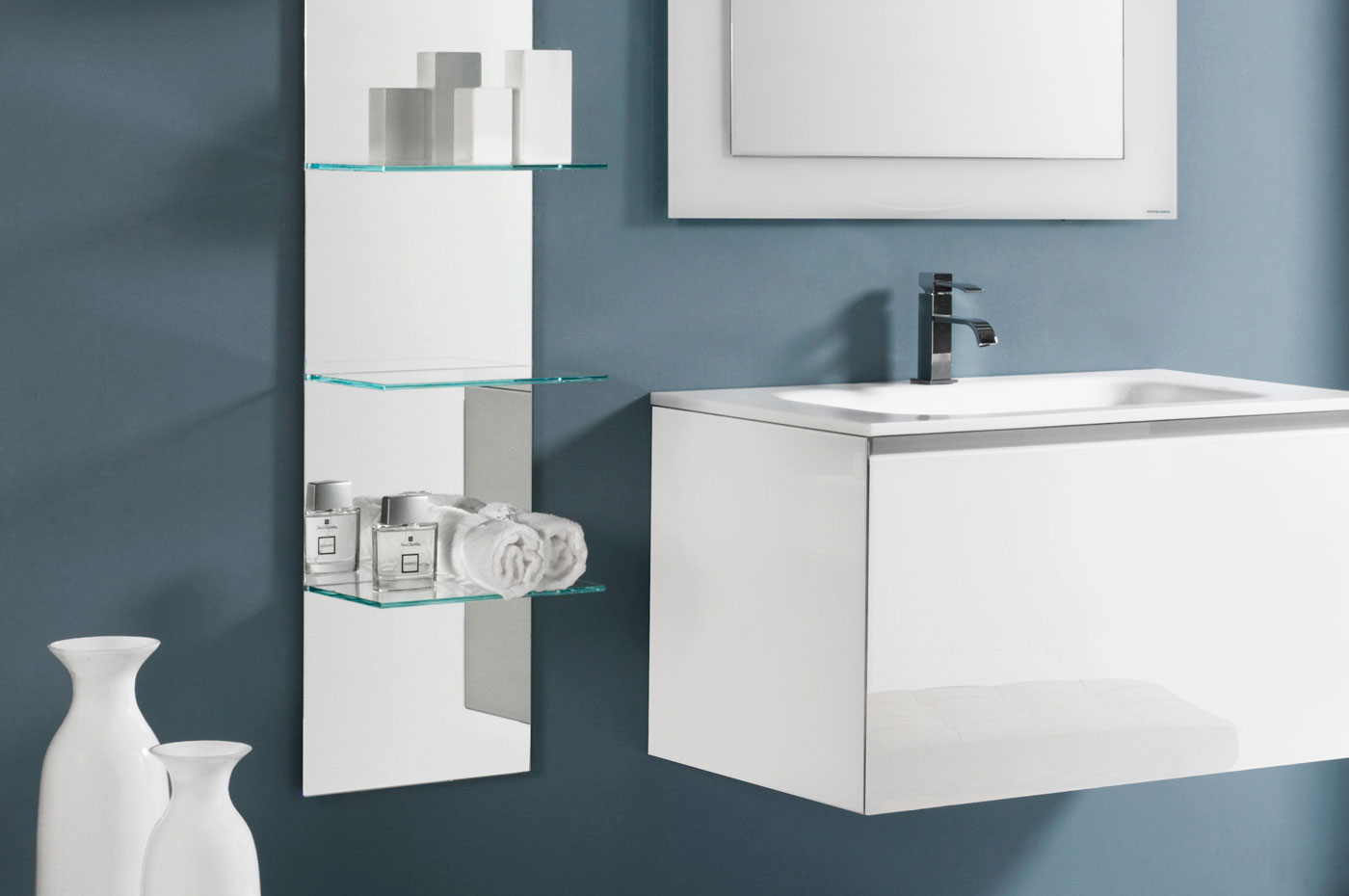 La particolarità di Domino è quella di offrire una vasta scelta compositiva, pur essendo elementi monoblocco in Cristallo. Domino e Domino44 si differenziano per la diversa profondità (permettendo di adattarsi alle più svariate esigenze spaziali) e per le caratteristiche delle aperture: dal cassettone ai due cassetti ?no al cassetto singolo.