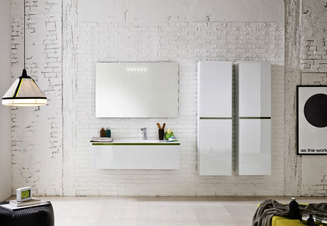 Per questa collezione è stato pensato un lavabo integrato dalla fusione particolare che permette di sfruttare al meglio tutta la profondità del mobile e di poter usufruire di miscelatori sia da appoggio che a muro.