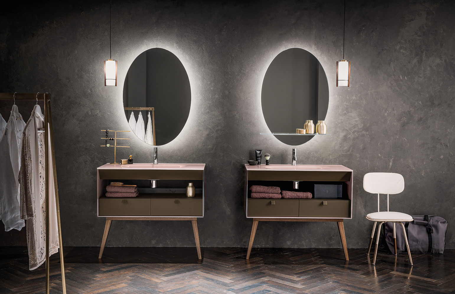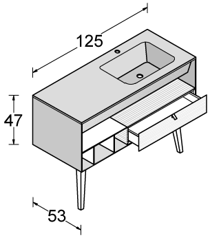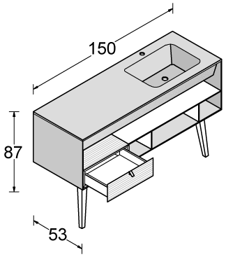 La razionalità del disegno del monoblocco è sdrammatizzata sia dalla componibilità interna data dai cassetti e dai vani a giorno, posizionabili liberamente all’interno dello spazio, sia dalla possibilità di abbinare colori diversi, grazie a Dualite.
