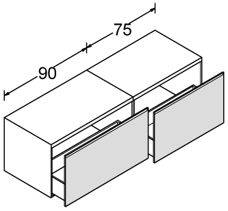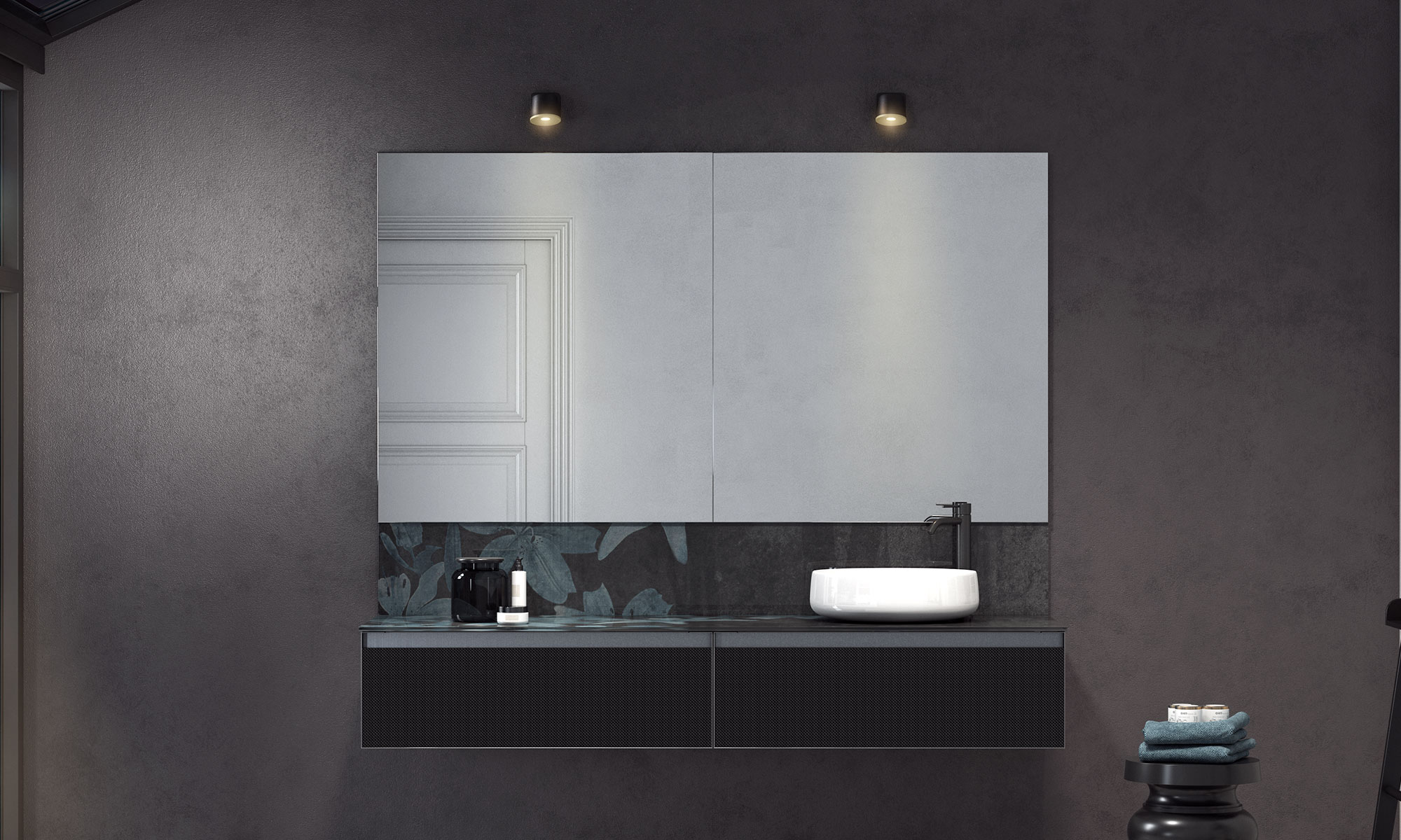 Programma di mobili contenitori versatili e funzionali caratterizzati dalla possibilità di essere interpretati tramite l’utilizzo di svariate finiture, quali ad esempio, vetri, specchi, grés decorativi e grafiche.