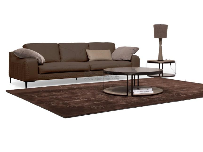 cm 250x345x82h base, arms & sides of back in leather Skin mud, seat & back cushions in fabric art. L1454 col. 03 Brera, metal feet col. black glossy finish