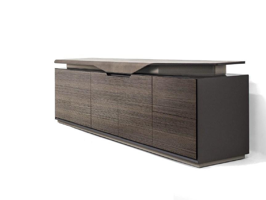 cm 230x50x70h top in leather Nabuk sand, frontal part in veneer elm matt, lacquered col. black matt & inside