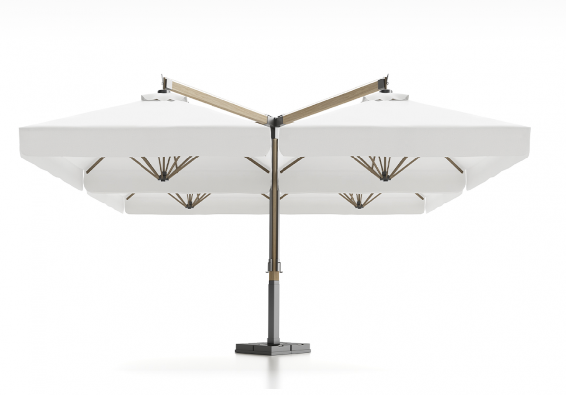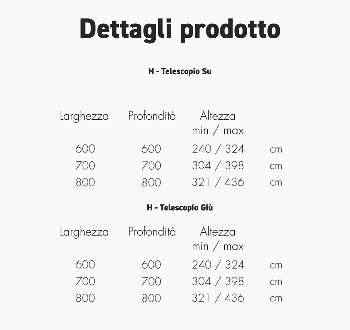 gr. 320, apertura a manovella su ogni ombrellone. Sollevamento telescopico