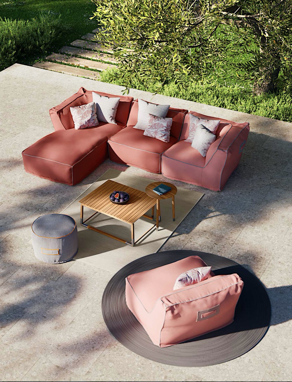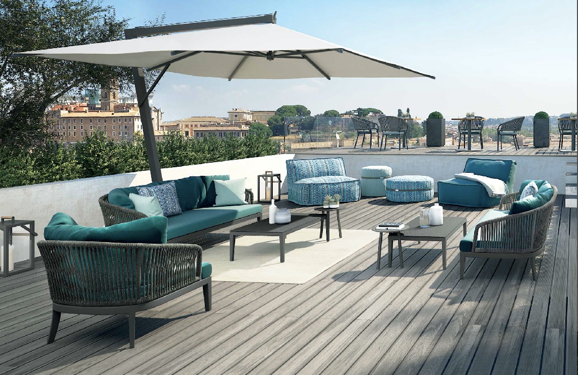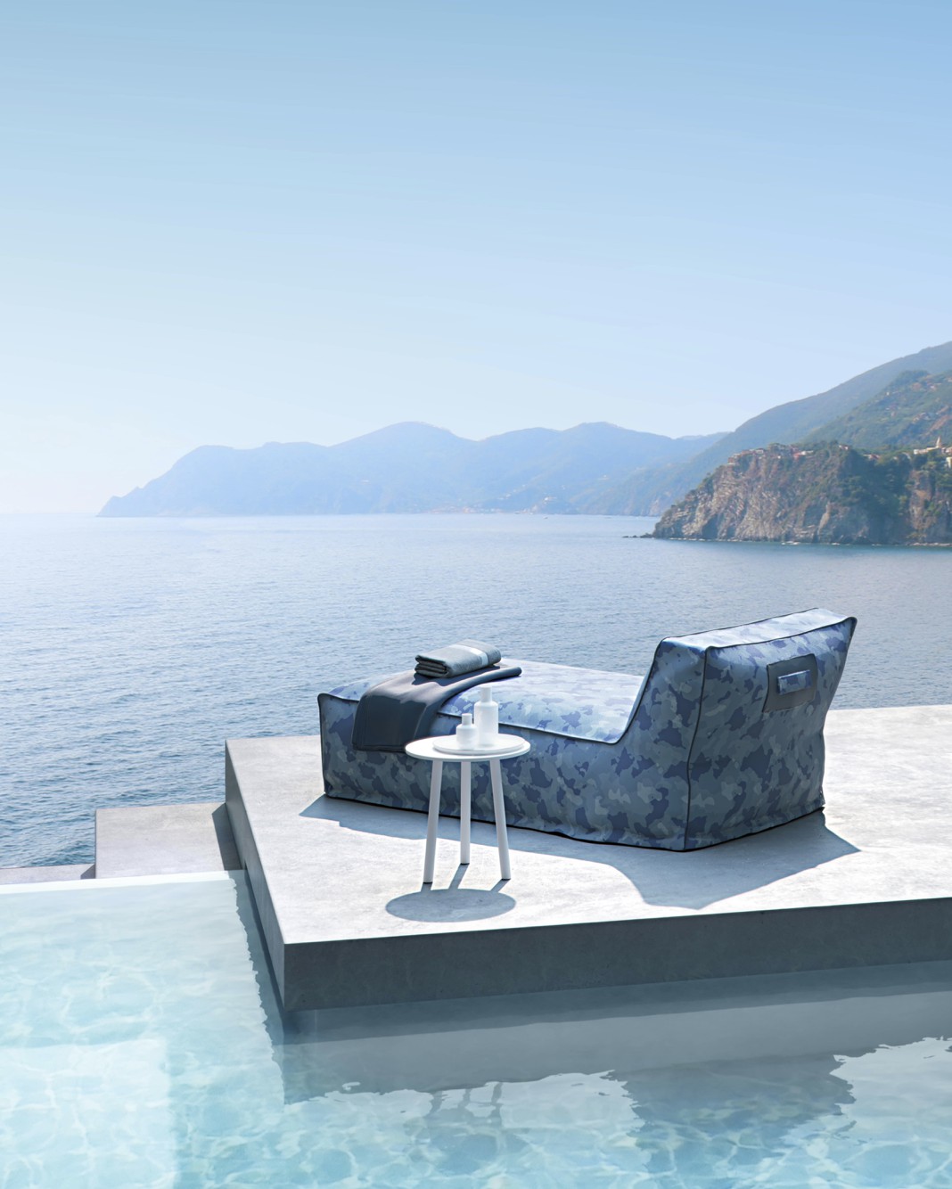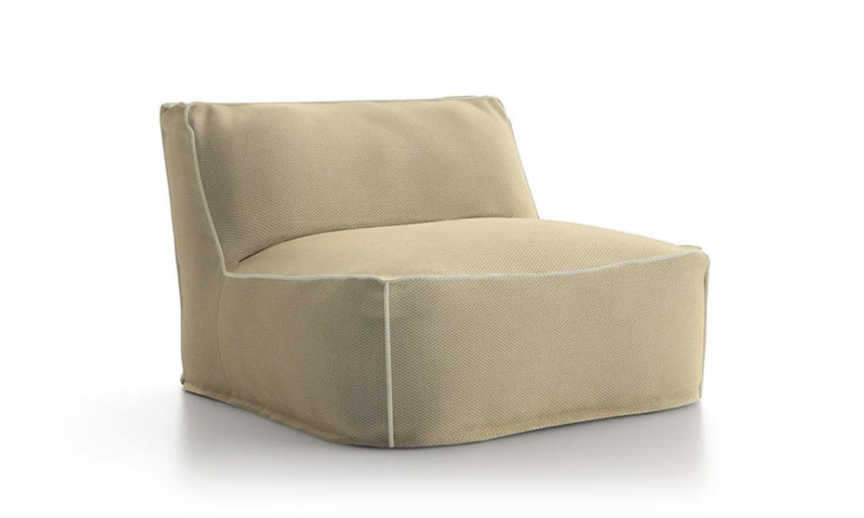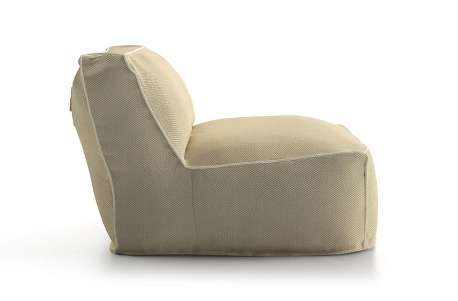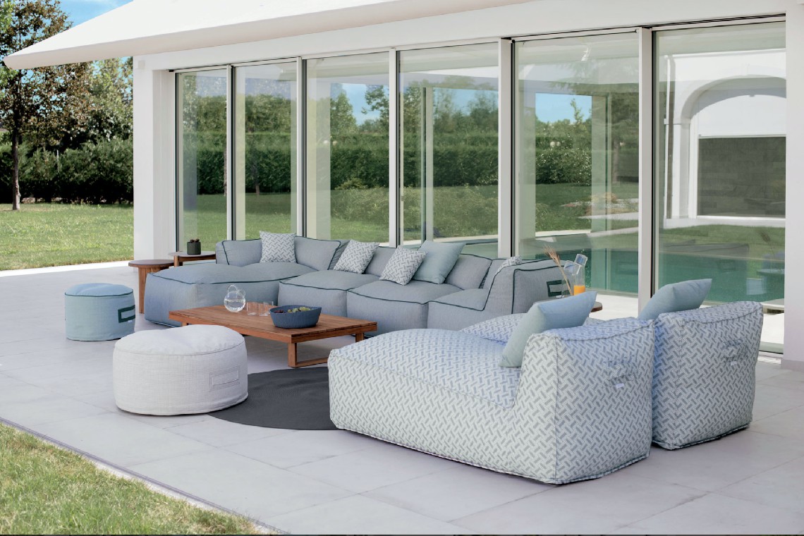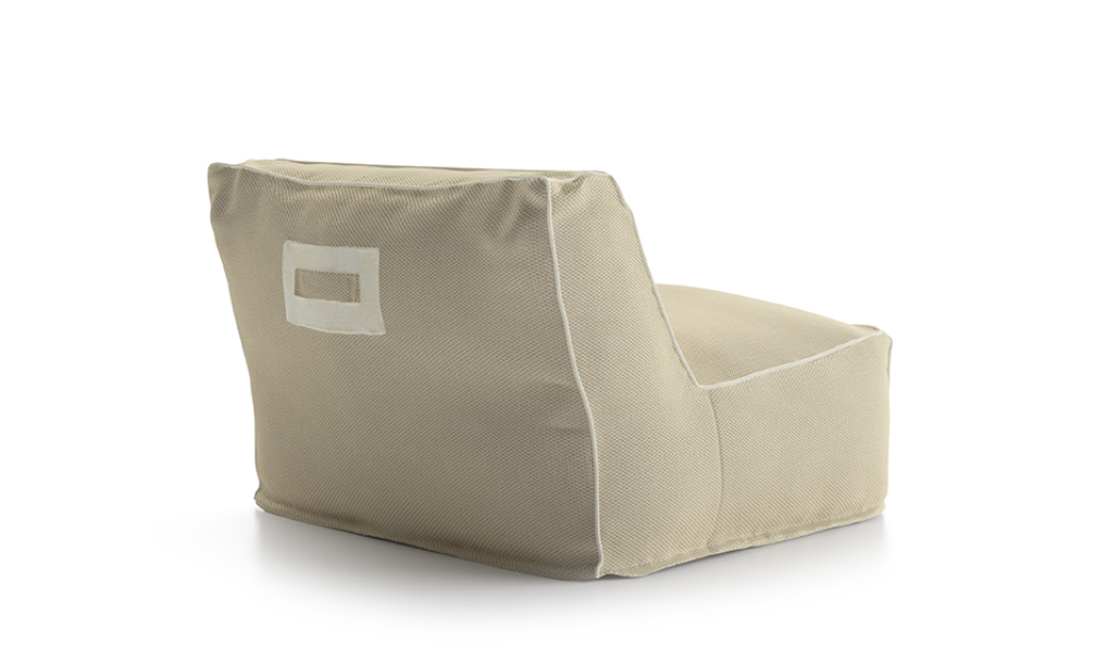 Un divano modulare trasversale composto da microsfere di polistirolo racchiuse in una fodera di tessuto tecnico traspirante e drenante che rendono veloce l’asciugatura e conferiscono al prodotto morbidezza e perfetta ergonomia.