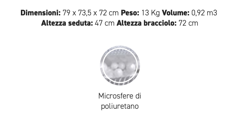 Struttura in microsfere di polistirolo traspiranti, rivestite con tessuto tecnico traspirante.