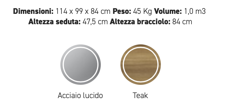 Struttura in teak e dettagli in acciaio 304.