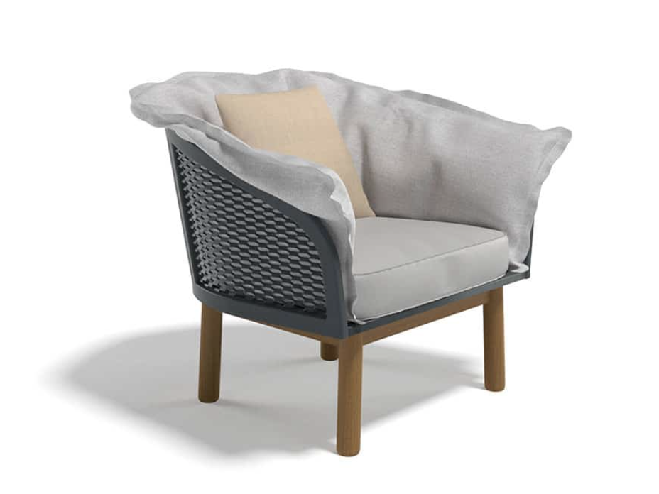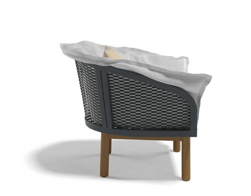 Poltrona e divano interpretano questa doppia anima fatta da componenti robusti e materici caratterizzati da un’avvolgente scocca in alluminio che incorpora una cuscinatura ergonomica e morbida che si riversa verso l’esterno dello schienale come il petalo di un fiore.