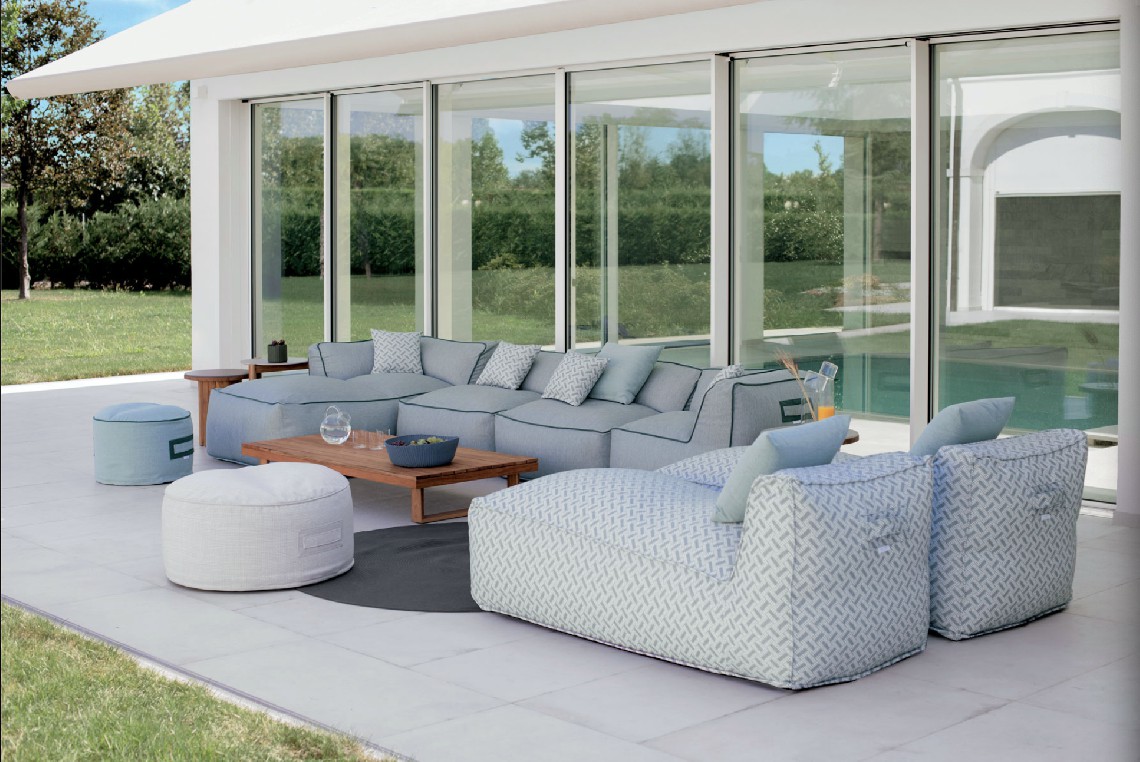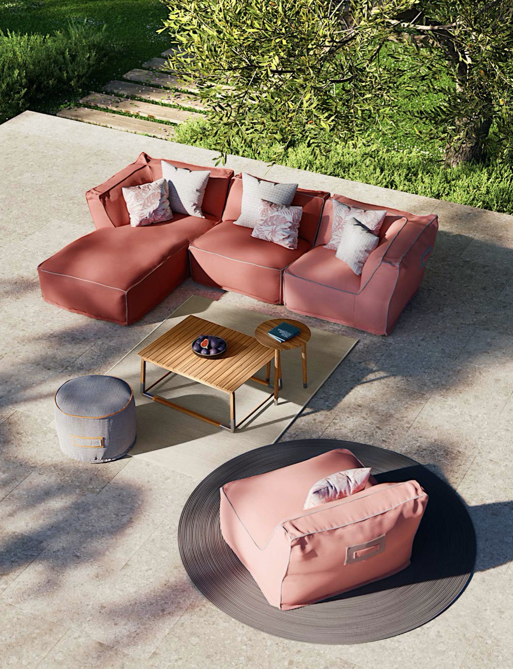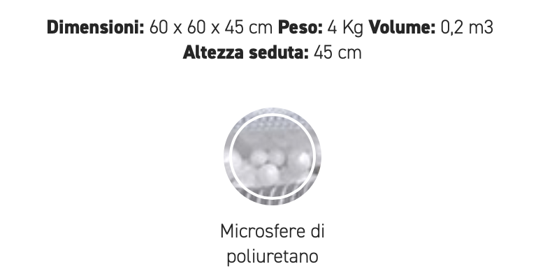 Composizione modulare costituita da microsfere di polistirolo traspiranti, rivestite con tessuto tecnico traspirante.