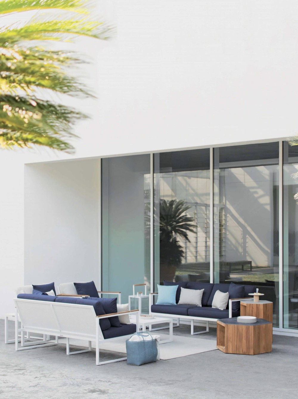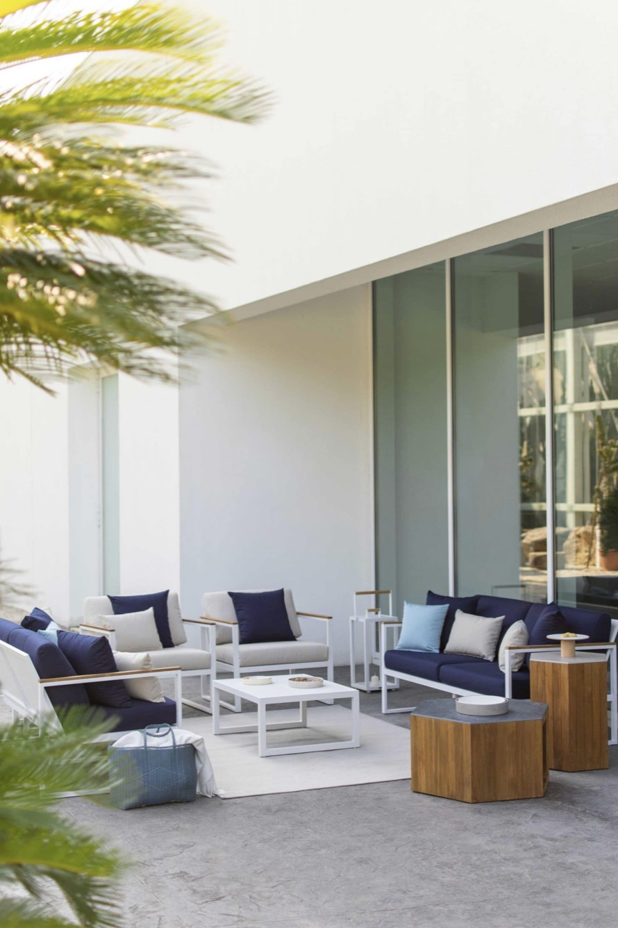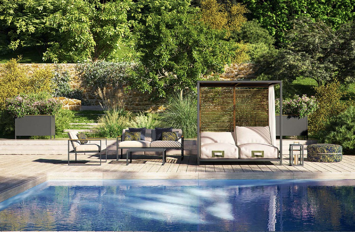 Cuscinature sfoderabili e lavabili in tessuto per esterni.