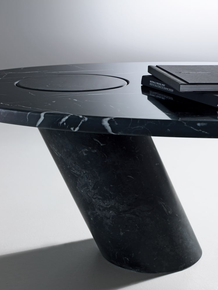 Vero e proprio record costruttivo, il tavolo “Eccentrico” porta Angelo Mangiarotti verso i primati di alcuni grandi “costruttori” di mobili del Novecento, come il Franco Albini della libreria “Veliero” e il Carlo Mollino del tavolo “Cremona”: progetti che per i limiti a cui erano spinti hanno mostrato traguardi teorici mai raggiunti prima.