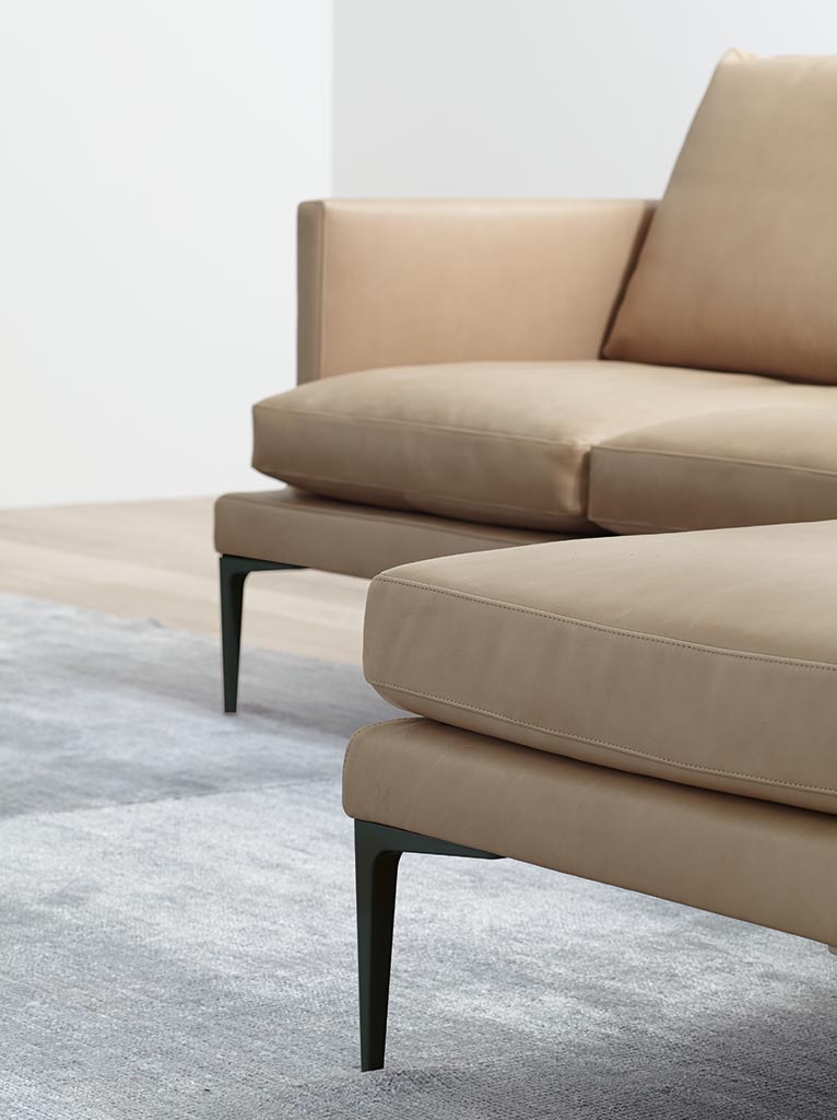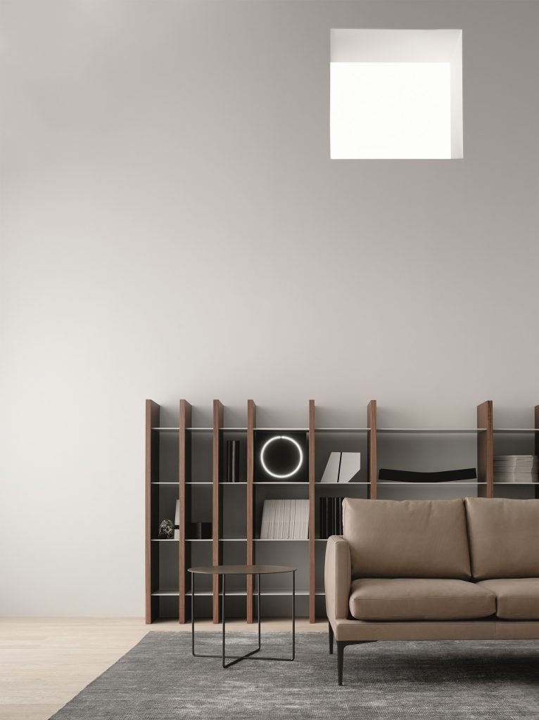 è rigoroso nelle sue linee che alternano angoli retti e curve, per migliorare il senso della morbidezza e successivamente il senso del comfort. Maggiore impatto è dato dalla base metallica che conferisce un aspetto minimalista all’intero progetto.
