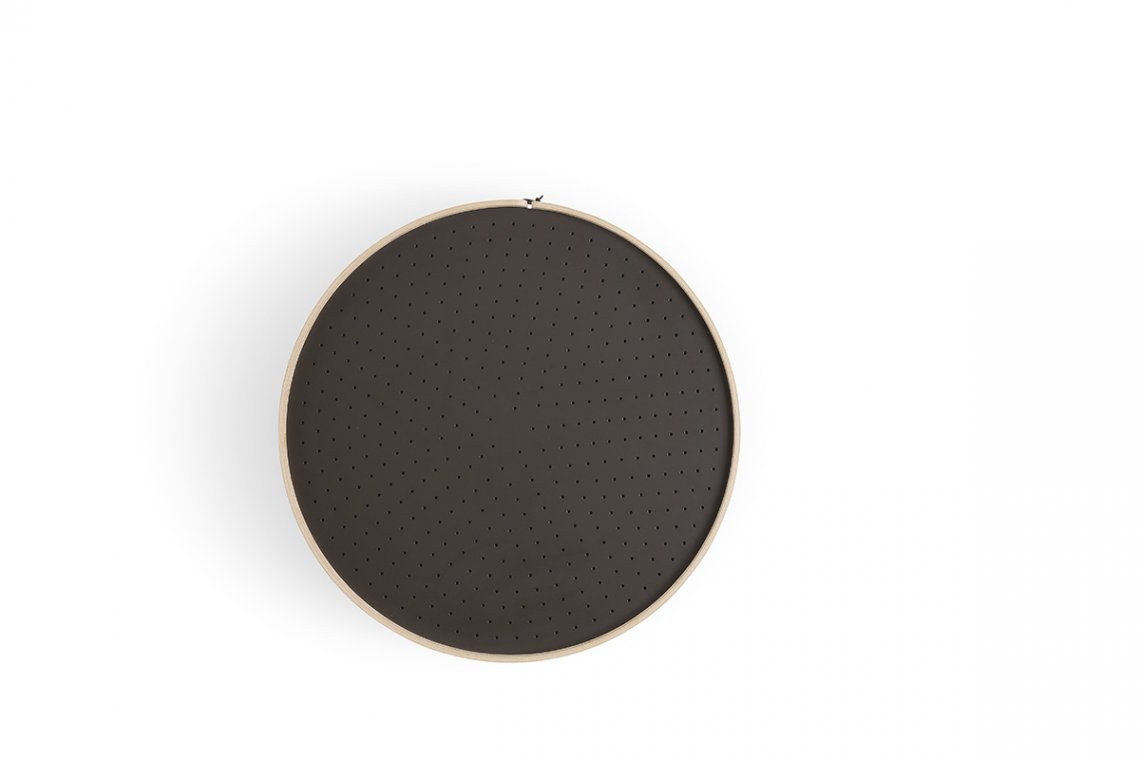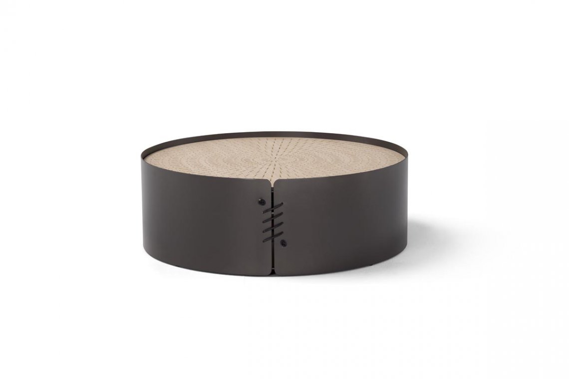 Così, a caratterizzare i modelli è un piano d’appoggio traforato in lamiera, in legno o in cuoio; tradizionalmente i setacci avevano pattern di traforo diversi, qui rielaborati e proposti per dare vita a complementi dalla personalità unica. La base può essere realizzata in legno, metallo o cuoio ed è composta da un’unica superficie curvata e chiusa da cuciture in cuoio. La superficie traforata del piano d’appoggio rende questo set particolarmente versatile.