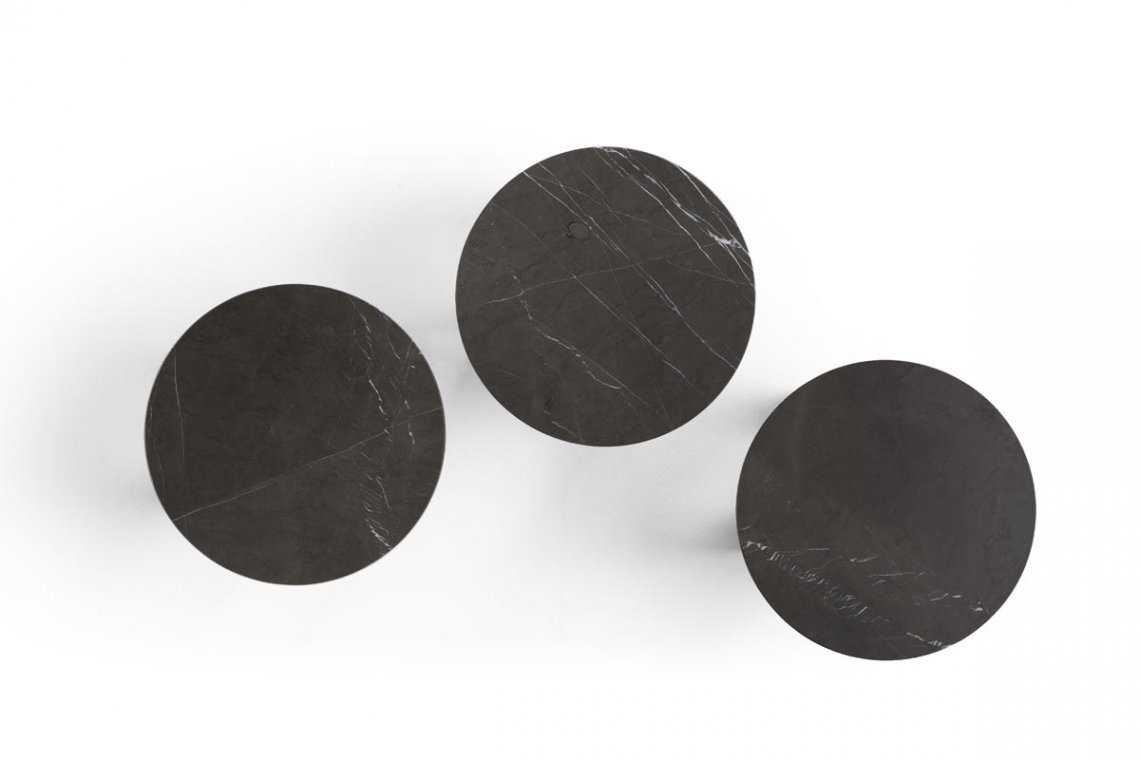 Vesta è una collezione di coffee table con struttura in legno e top in marmo.