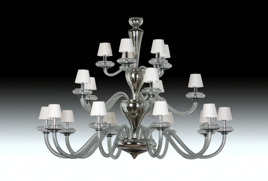 RUGIADA - 20 Lights吊燈Seguso chandeliers embody the nature of shining glass. Developed with form, style technique, and different light translucencies, Seguso chandeliers over the centuries have adorned princely residences, large hotels, theaters, and museums.