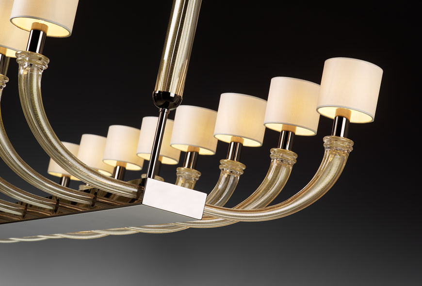 Seguso chandeliers embody the nature of shining glass. Developed with form, style technique, and different light translucencies, Seguso chandeliers over the centuries have adorned princely residences, large hotels, theaters, and museums.