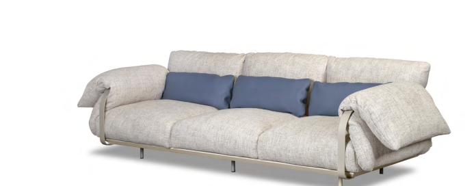 The elements in the Narciso collection give body to these instances. Sofa, dormeuse and armchair: three pieces with an identity defined by sculptural lines. Their respective silhouettes, rendered vaguely irregular by the large, soft cushions that give shape to the backrests and headboard and fall softly over the armrests, are designed as much to stand out on their own as to blend in with each other and with the existing environment.