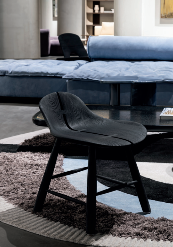 Like sculptures, the elements in the Himba collection have a powerful, compact lightness, capable of fitting into the spaciousness of a living room or an organised study, or in the cosiest corner of a bedroom. Their delicate rigour, made up of flowing, open lines, traces airy, unusual perspectives in an interior. The space opens up, appears expanded; light finds new ways to get through, nourishing a relationship between inside and outside capable of expressing both encounter and possibility.