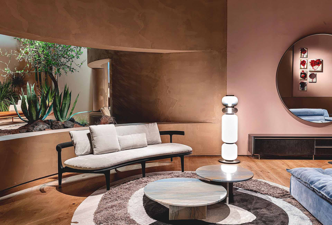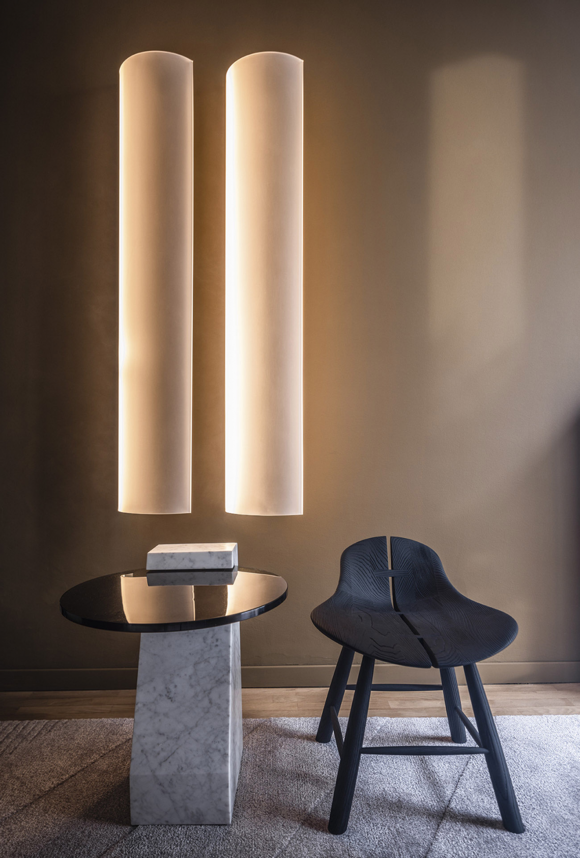 Like sculptures, the elements in the Himba collection have a powerful, compact lightness, capable of fitting into the spaciousness of a living room or an organised study, or in the cosiest corner of a bedroom. Their delicate rigour, made up of flowing, open lines, traces airy, unusual perspectives in an interior. The space opens up, appears expanded; light finds new ways to get through, nourishing a relationship between inside and outside capable of expressing both encounter and possibility.
