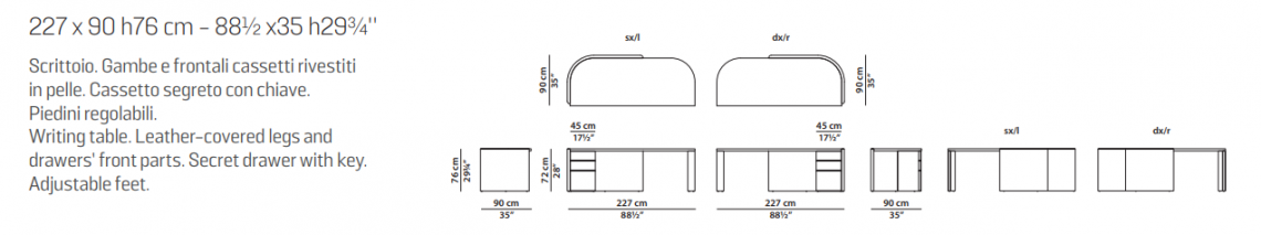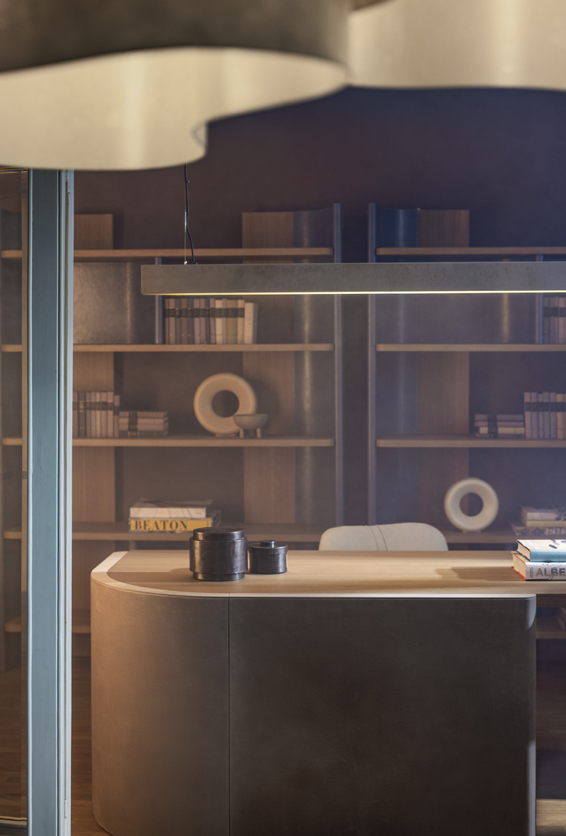 The mix of polished oak and leather reflects the idea of a contemporary classicism that transcends time. And we have the pleasure of choosing the combinations from the many nuances available.