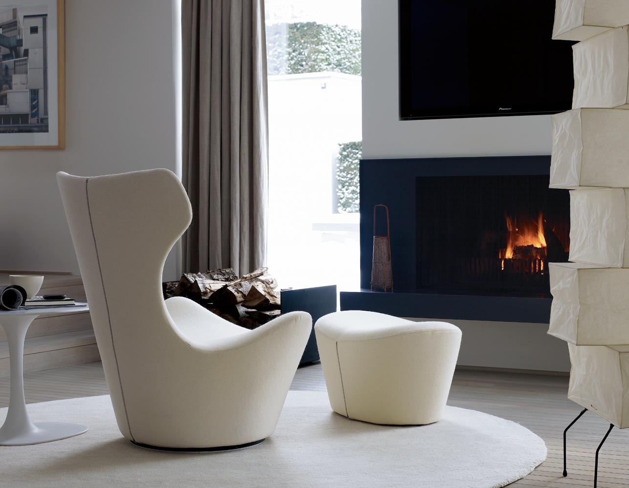 如作者所解釋,作品的名字之所以會讓人想起蝴蝶是因為“靠背的設計采用了兩個翼狀造型,而頭枕則被放在它們之間,倍加呵護。”它看似是在一整塊倒過來的截頭圓錐體材料上雕刻而成。它具有強烈的個性。旋轉底座系統(tǒng)使其能夠更方便地接觸周圍環(huán)境。這款椅子包含一把擱腳凳,讓您盡情放松。