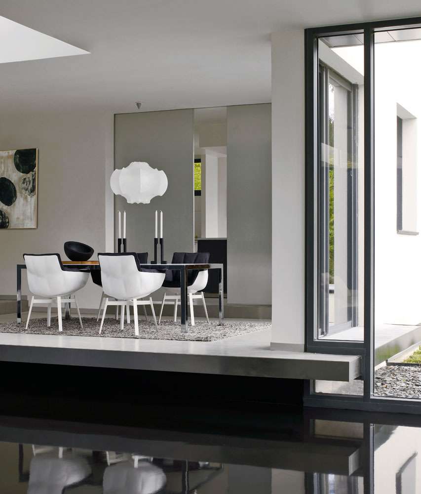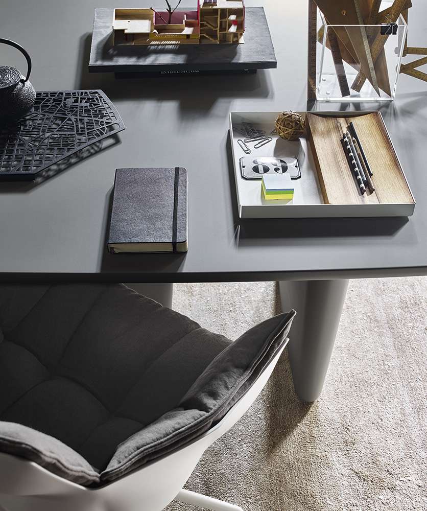 這款椅子十分舒適并以現代方式將底座和座椅相結合,采用了同名扶手椅的輪廓。主體部分的設計借鑒了手工皮質釘扣(capitonné)的手法,傳達出一種柔軟的感覺;用按扣固定的織物或皮革靠包因其縫紉手法而顯得與眾不同。同時,它還有多種顏色和組合。
