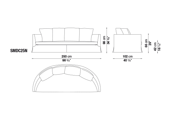半圓弧形的造型讓這款沙發在三個寬度上(in three widths)別具特色,尤其適合擺放在房間中央。帶有銀灰色涂層鋼制旋轉底座框架的扶手椅也采用了這種弧形,使其可以安置在任何環境中,無論是起居室、書房還是臥室。