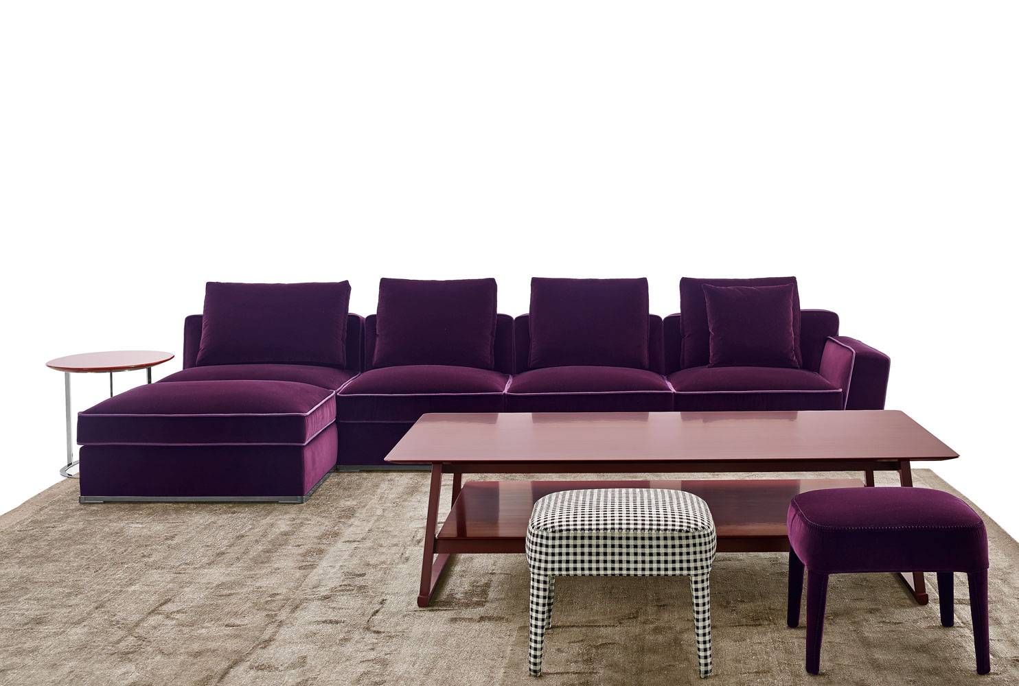 Apta Collection中的Solatium是一款全新的座椅系統,含有140個不同的元素。其特點在于珍貴、優雅的細節使其巨大的尺寸顯得較為柔和。它當代的特色源自其模塊化的靈活性。可以對它進行多種不同的配置,巧妙利用元素的2種深度:帶有 終端元素的貴妃躺椅直線型沙發,帶有扶手和不同高度靠背,且充滿活力的轉角沙發,還有擱腳凳。帶有銅鎳或黑色鉻飾面的金屬輪廓讓框架更加穩固。底座套和靠包有各種皮革或織物面料選擇,還帶有織物或皮革的搭配輪廓(matching profile),從而提供單色解決方案或對比鮮明的解決方案。為了讓這個系統更加完整,不同形狀和飾面的小桌子和臺子和諧搭配,讓這個系列顯得優雅,獨一無二。