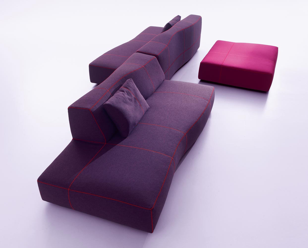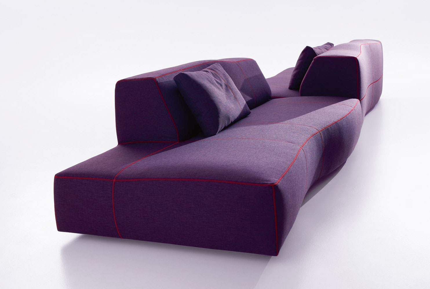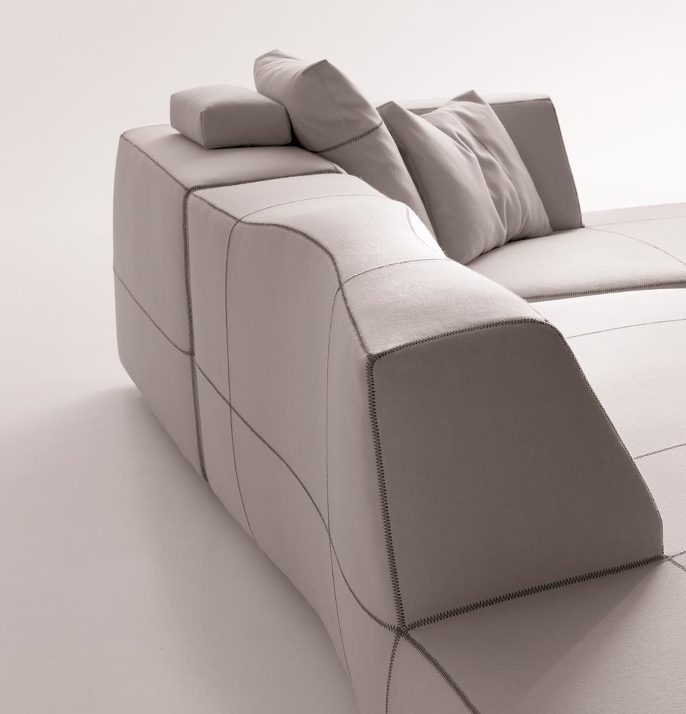 它給人的印象是曾經過某位藝術家的鑄模處理,但其實它的這種效果是來自于3D模型和數字化研究。它看似一個經過設計師切削、磨圓和鑄模的整體。不規則的形狀使其更加舒適,對比色的接合縫勾勒定義了設計和動作。Bend Sofa結合了手工技巧和技術,硬度和力量,同時豐富的型號使其在使用方面也相當靈活。它的原創性與非常詳盡的組合研究密不可分。其波紋狀的模塊的組裝可以從座椅、擱腳凳和轉角元素開始,它們可以實現各種可能的解決方案——從用于有限空間中緊湊的線性版本到復雜、范圍寬廣的布局。