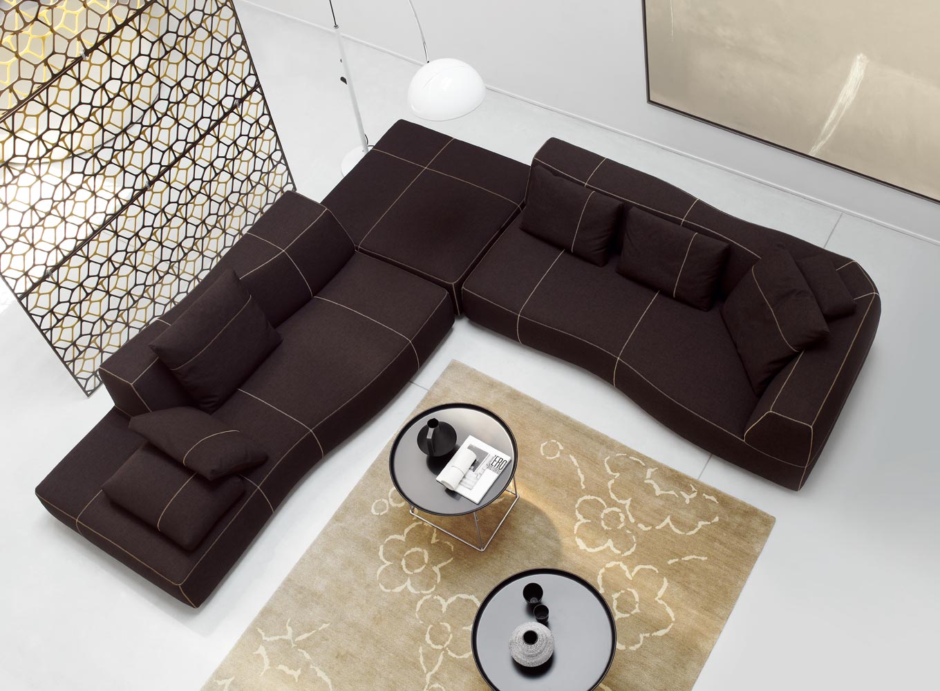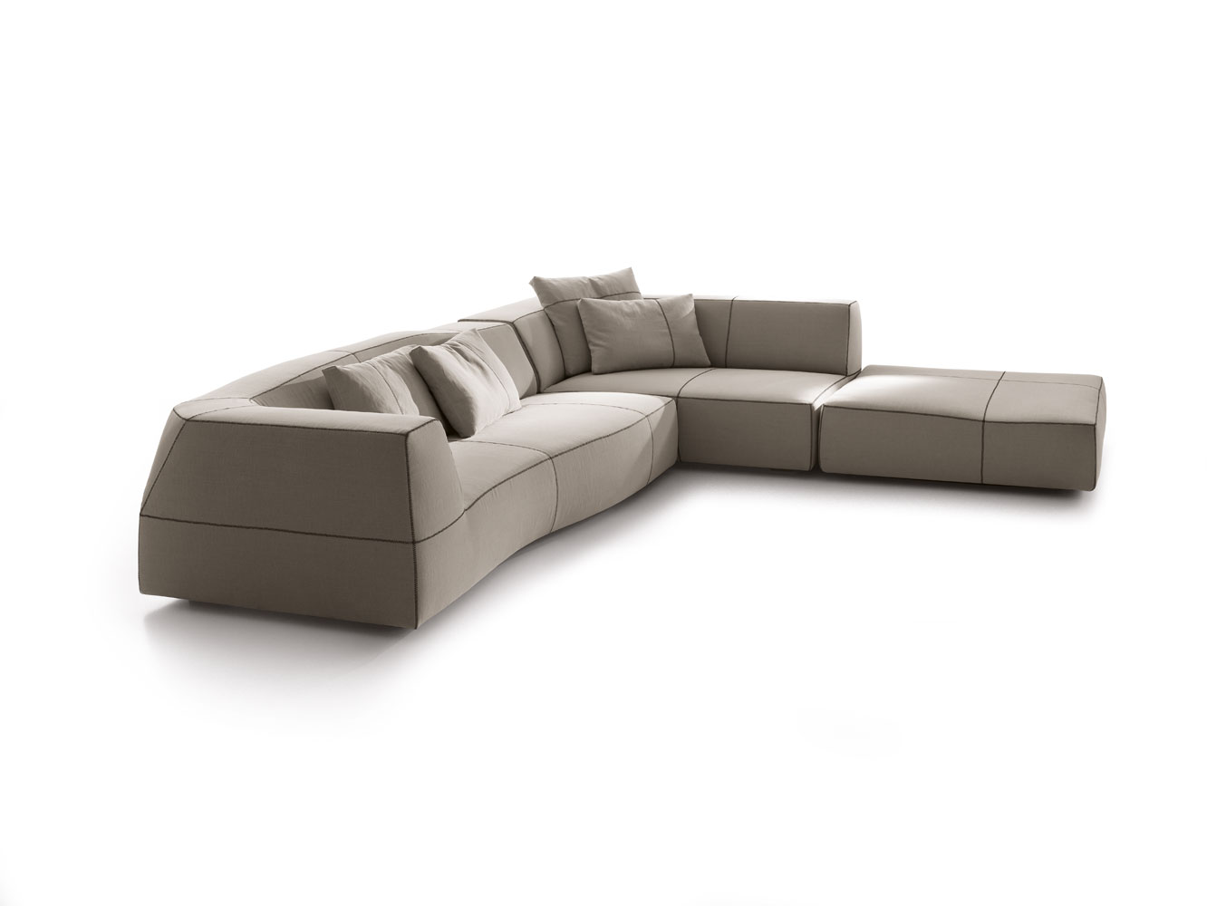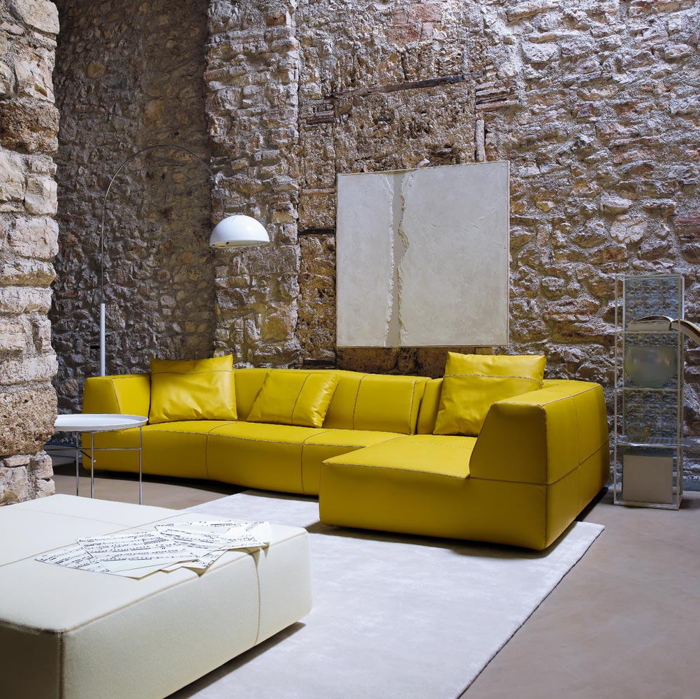 它給人的印象是曾經過某位藝術家的鑄模處理,但其實它的這種效果是來自于3D模型和數字化研究。它看似一個經過設計師切削、磨圓和鑄模的整體。不規則的形狀使其更加舒適,對比色的接合縫勾勒定義了設計和動作。Bend Sofa結合了手工技巧和技術,硬度和力量,同時豐富的型號使其在使用方面也相當靈活。它的原創性與非常詳盡的組合研究密不可分。其波紋狀的模塊的組裝可以從座椅、擱腳凳和轉角元素開始,它們可以實現各種可能的解決方案——從用于有限空間中緊湊的線性版本到復雜、范圍寬廣的布局。