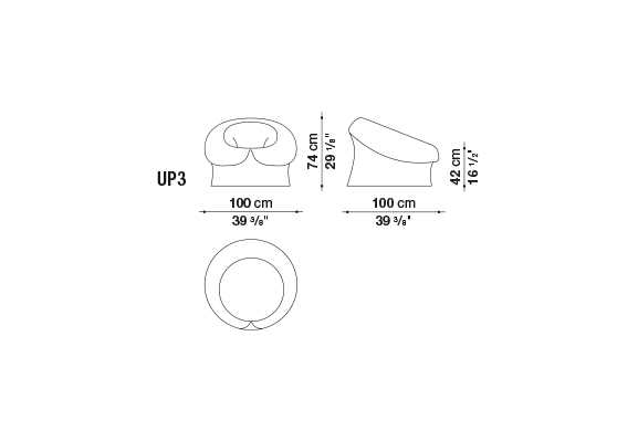 UP系列設計于1969年,它從一開始就是最為突出的設計表達,采用彈性面料作為飾面,造型極具表現力。組成該系列的七件產品包括扶手椅和厚圓椅墊UP5_6,這是現代性的標志,隱喻擁有舒適子宮(comfortable womb)卻依然受到禁錮的女性。這個無與倫比的設計標志目前有一個初級版本,除了體積小于原版之外,其他都是完全相同的。這是為3歲以上兒童設計的。