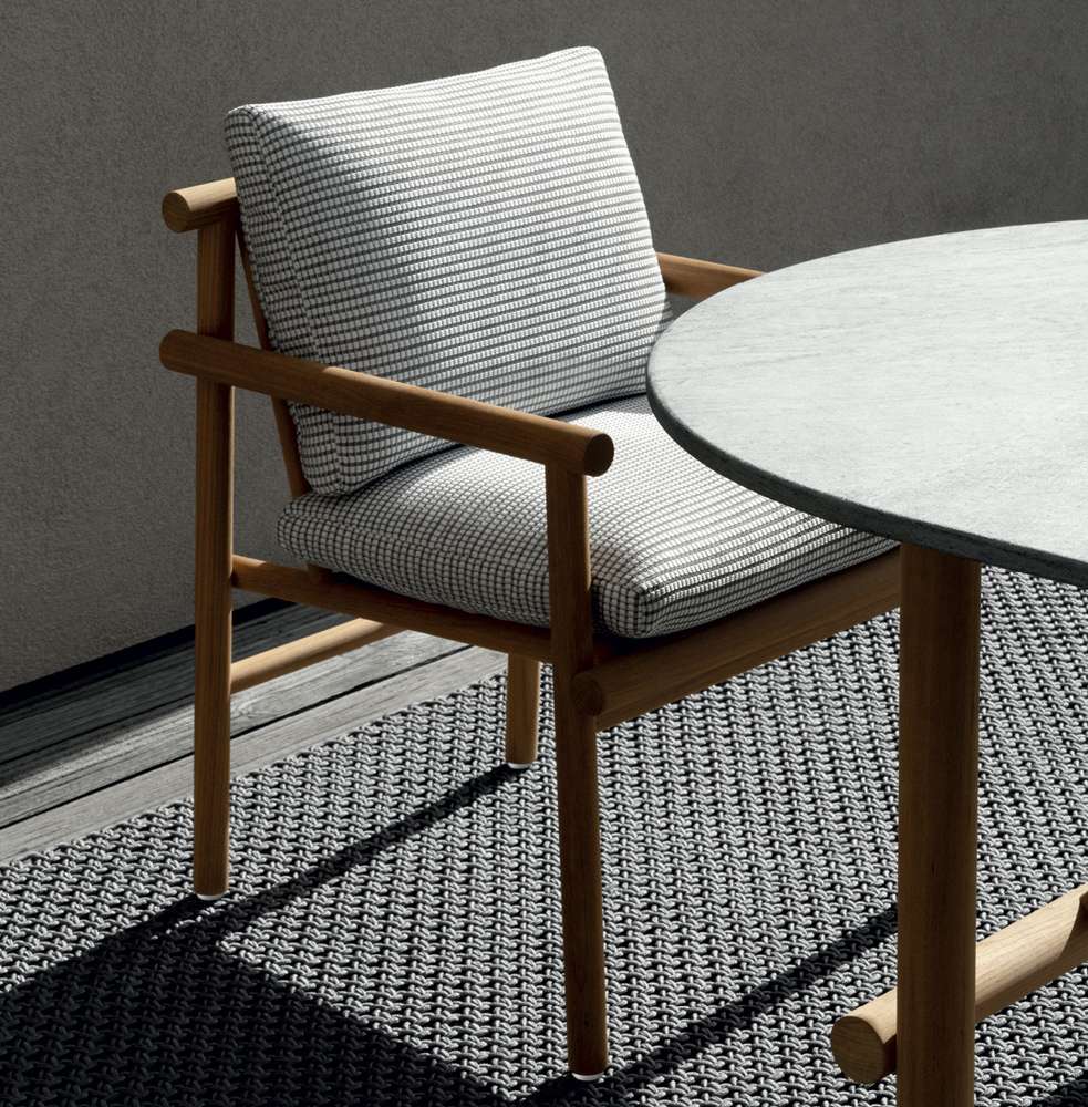 Minimalist and innovative, the Ayana collection becomes a new chapter in the story that connects B&B Italia to Naoto Fukasawa. It sees wood as the protagonist, interpreted in an unusual way, witha pleasant oriental touch. If the depths and heights are a clear reference to the south-east Asian tradition, the backrest recalls a Swedish wall bar, an exercise equipment turned into a load-bearing element. Thanks to this solution, the elements of the Ayana collection can be enjoyed and appreciated at 360 degrees, discovering on each side a new elegant interplay of intersections and proportions. Two and three seat sofas and the armchair have armrests at different heights. The armchair armrest is higher to guarantee a more ergonomic seat. The sofa armrest, which is lower, can be combined with a cushion that is easy to be fastened and removed, and helps to lie down more comfortably if necessary. The upholstery of this collection stands out for the individual cushions, all covered with waterproof fabrics.
