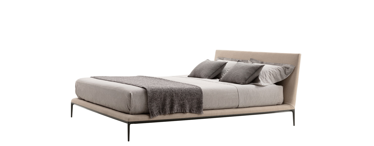 The B&B Atoll collection is continuously being expanded and updated, and has now been extended with the addition of a new bed. This latest piece of furniture reflects the stylistic elements of the B&B Atoll sofas, united as they are by the same exceptional elegance, clean, understated lines, and rigorous proportions, as well as by the die-cast aluminium legs set at each corner, now a staple of contemporary furniture. As with the entire B&B Atoll range, the bed can be covered in leather or fabric.
