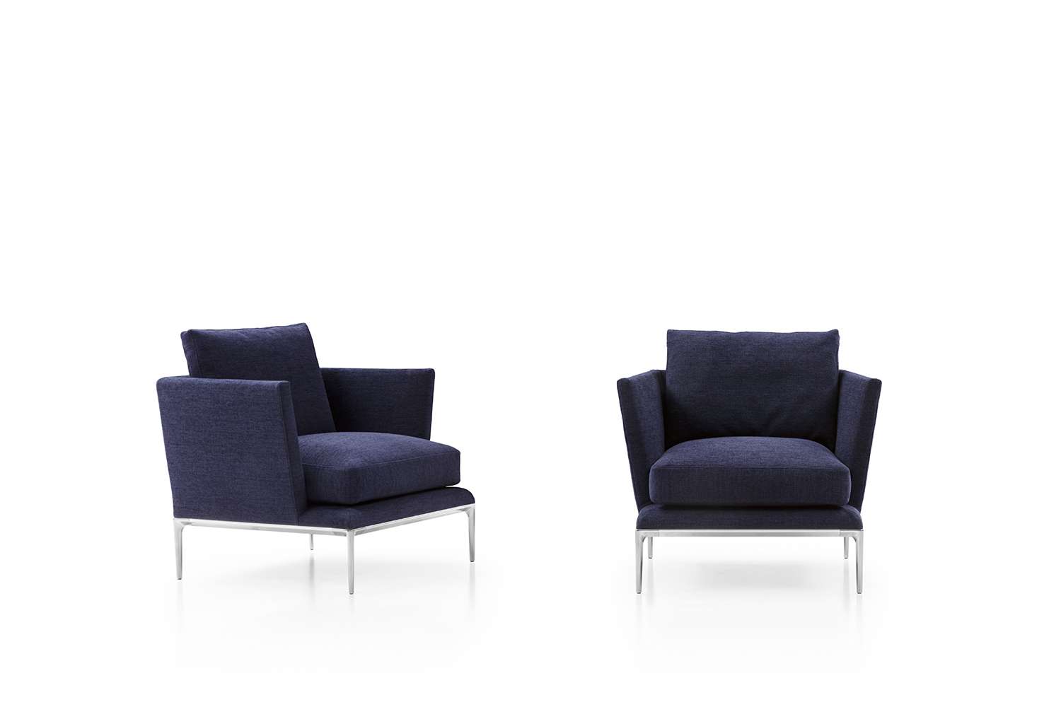 The latest addition to the B&B Atoll seating range is this new small armchair. Agile and elevated in design, its thin metal legs evoke the style of the sofa and are ideally complemented by the characteristic shape of the cushions, which harmonise linearity with softness. The backrest and seat are characterised by two soft cushions that rest on a slightly inclined frame, providing the ideal balance between comfort and functionality.