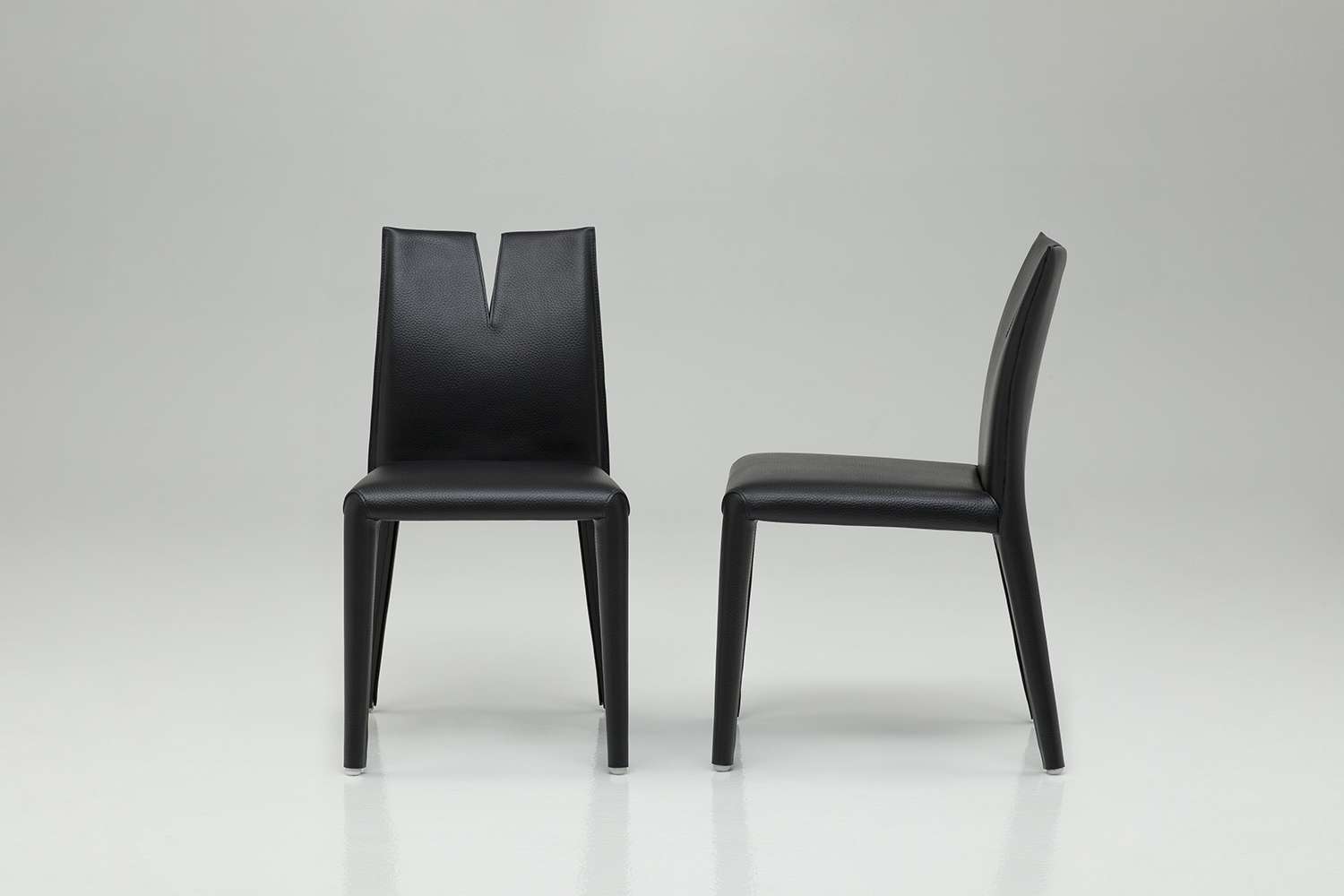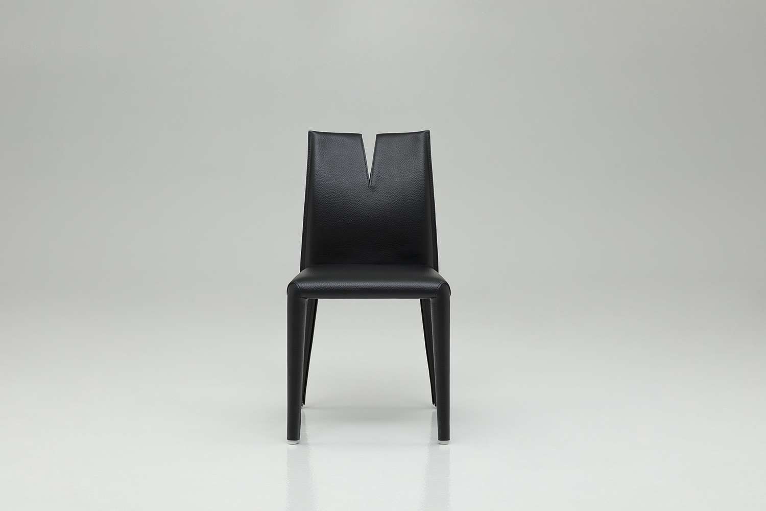 Cutter is Mario Bellini’s new chair with strong and decisive aesthetics which create a new type of seating. The back of the chair is slashed by a cut which is pays homage to the great artist Lucio Fontana. Although evident, Cutter’s nature does not only lie in an aesthetic choice but generates an unprecedented type of seating. The twin backrest’s ends are functional and comfortable in a frontal position, while moving independently and allowing a lateral position. This gesture is suitable for chatting with the person seated nearby. It is also designed to ensure high comfort seating and casual movements, allowing the user to lean on one side with an arm placed around the backrest. The seating frame is made of metal and webbing, softened by a classic polyurethane upholstery. To guarantee elasticity and strength to the double backrest, B&B Italia’s Research & Development Centre has opted for a sophisticated harmonic steel core. The upholstery and cover fully envelop the chair in embossed thick leather, creating an ideal synthesis of softness and rigour, underlined by saddle stitching.  The central cut reveals an inner part in refined black Saffiano thick leather, as if Cutter’s soul peeps out from this dramatic opening.