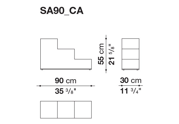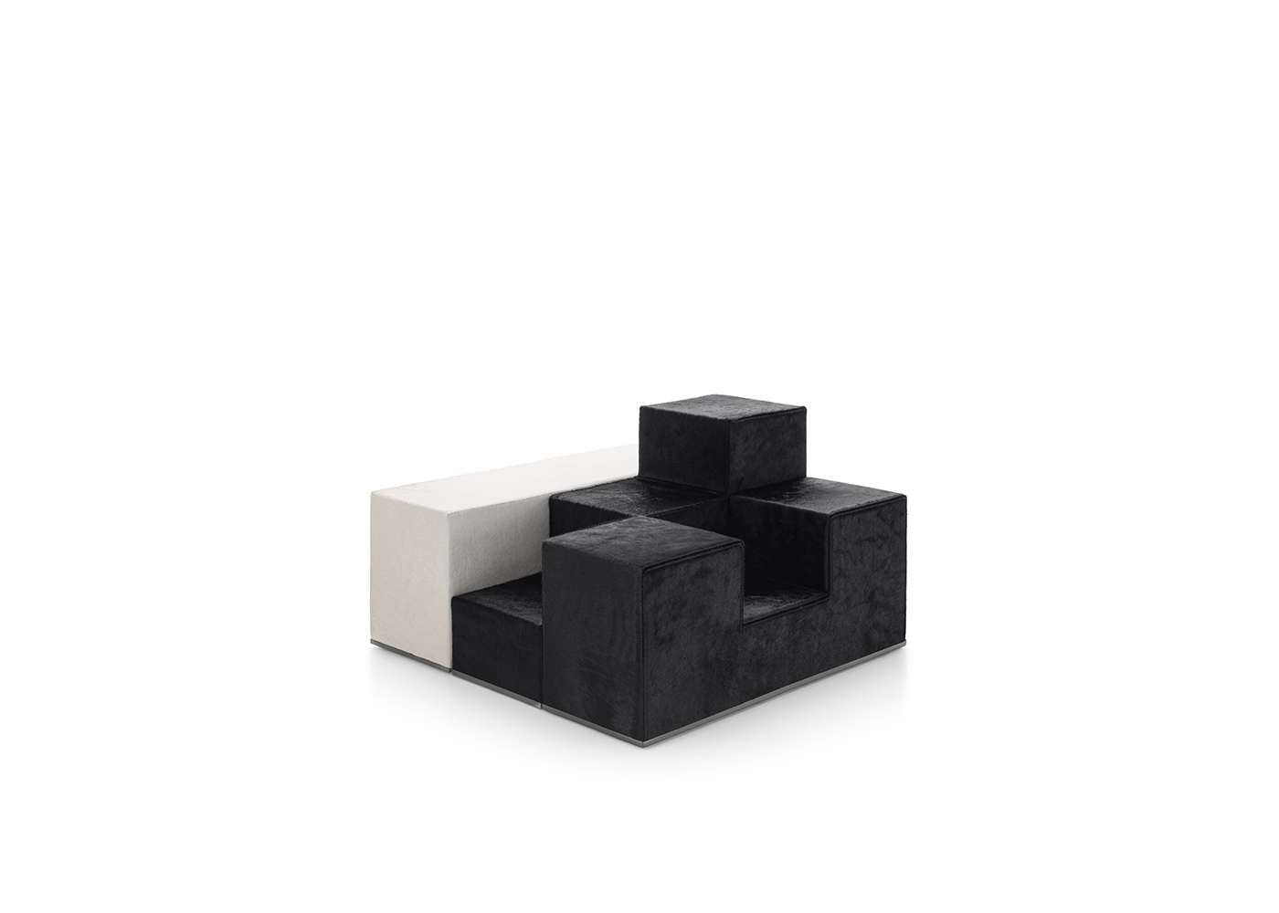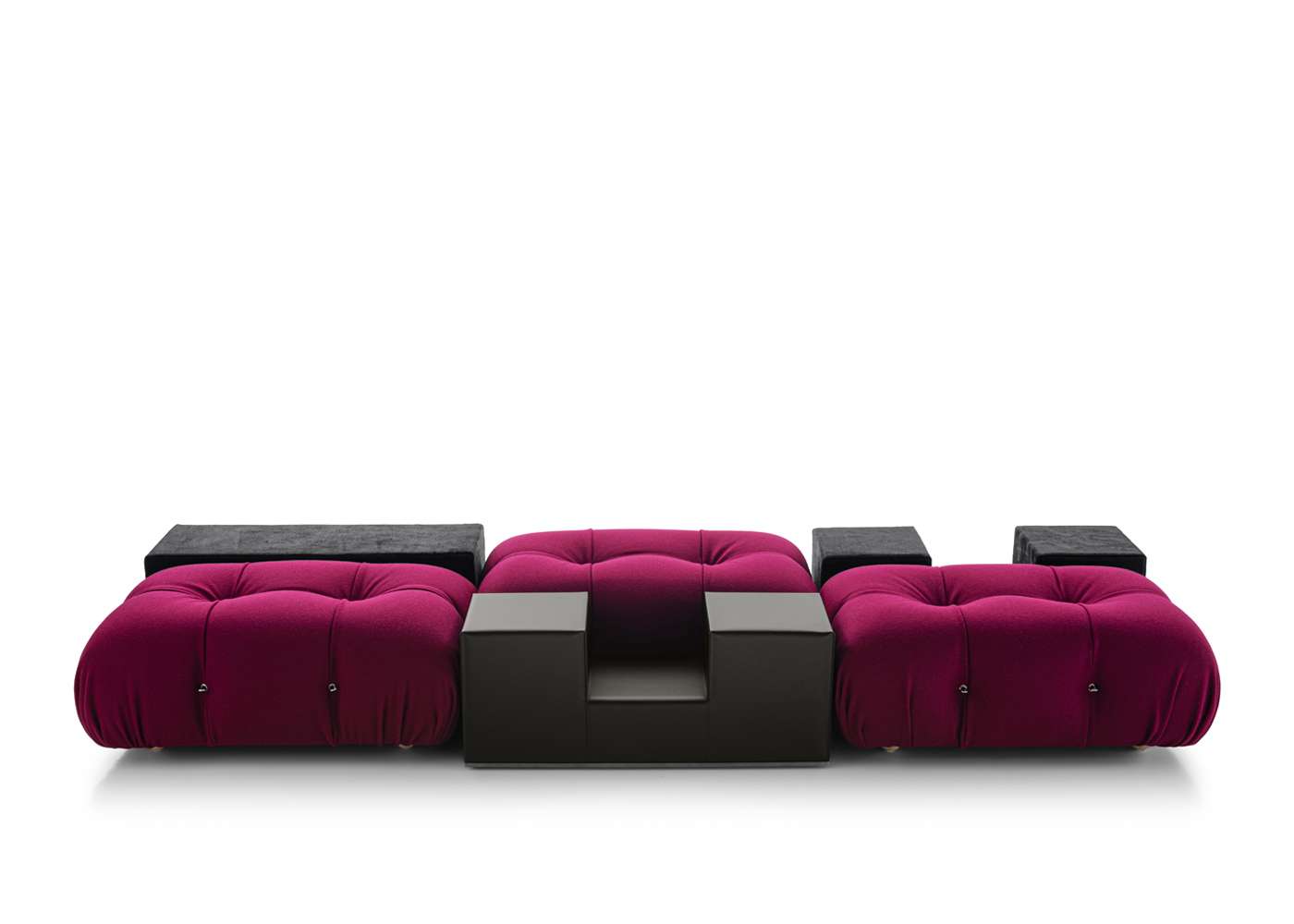 The flexible nature of Camaleonda continues and is completed by Gli Scacchi, the chess pieces, a series of accessories designed by Mario Bellini to become additional tables or seats. The three pieces that make up the series are inspired by the game of chess, in particular the queen, the knight and the rook (hence the Italian names Regina, Cavallo, Torre), light and easy to move like on a chessboard. “They are among the most playful pieces of furniture I have ever designed”, Bellini states, underlining the free and amusing spirit they bring to interiors. In the 1971’s original version, Gli Scacchi represented a remarkable technical innovation as they were produced in self skinning polyurethane foam, a solution which was initially used only by the automotive industry and introduced for the first time in furniture. The 2020 reissue offers soft covers made of thick leather or Kanu leather with visible stitching. The shape of the three elements elaborates on and develops the parallelepiped, through structures made of soft polyurethane that perfectly synchronize with the dimensions of the Camaleonda. At the base there is an elegant metallic profile, an element that defines the geometry of the shape in contrast, with the softness of the object.