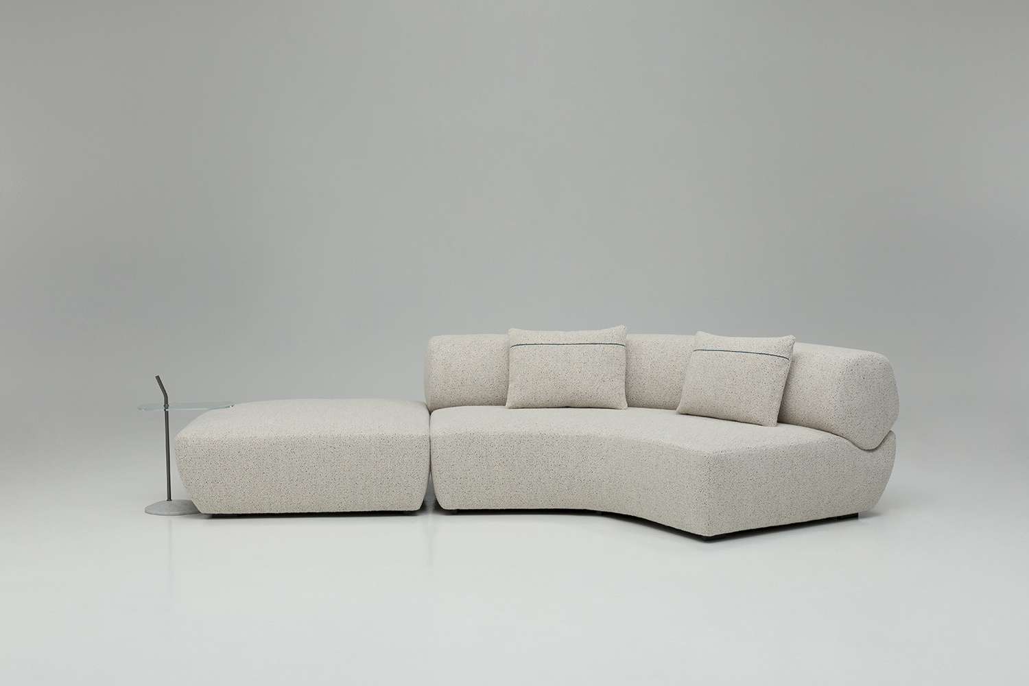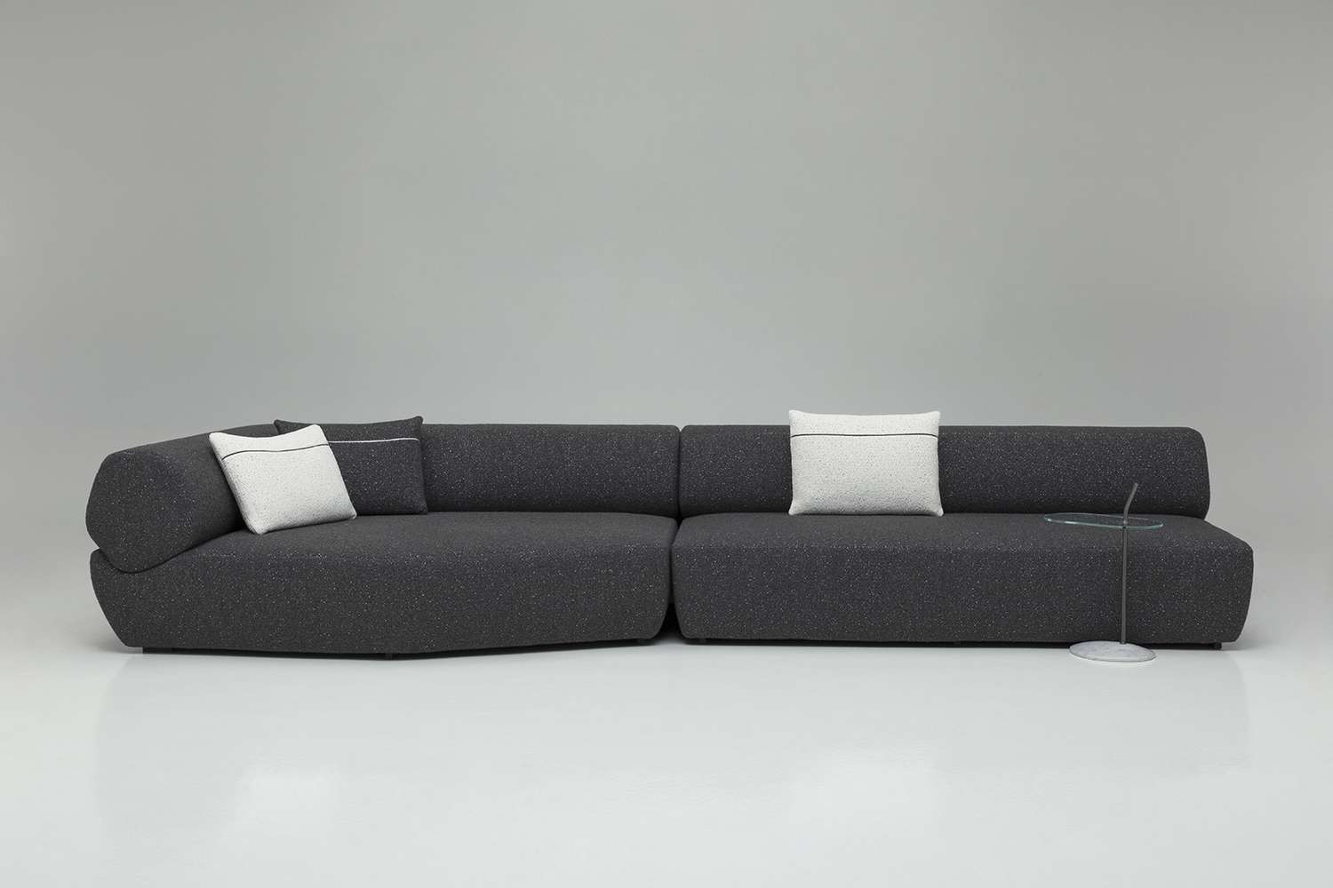 Yabu Pushelberg’s Naviglio collection is composed of a curved, linear, chaise longue and ottoman elements that together express a visual dialogue between structure and form. The synthesis is the project’s essence and starts from its name. Watercourses are places of meeting and confluence, a synthesis of trade and leisure, human intervention and contact with nature. This was the starting point for the designers George Yabu and Glenn Pushelberg for their first partnership with B&B Italia. In the Canadian designers’ vision, the seating base is a riverbed that defines the space to accommodate a backrest/armrest which is as sinuous as a watercourse. Yabu Pushelberg’s design builds a relationship between organic forms and B&B Italia’s moulding technologies to create a consistent and univocal whole. As a piece of a puzzle, the B&B Italia team has ergonomically designed each shape to achieve a single cohesive unit. The backrest section and the seating shapes reveal a delicate balance between polygons and curved shapes, where geometry becomes softness and rigour blends with comfort. The backrest originates from a round shape, but it is actually an irregular polygon with rounded edges - both an amazing and reassuring detail.