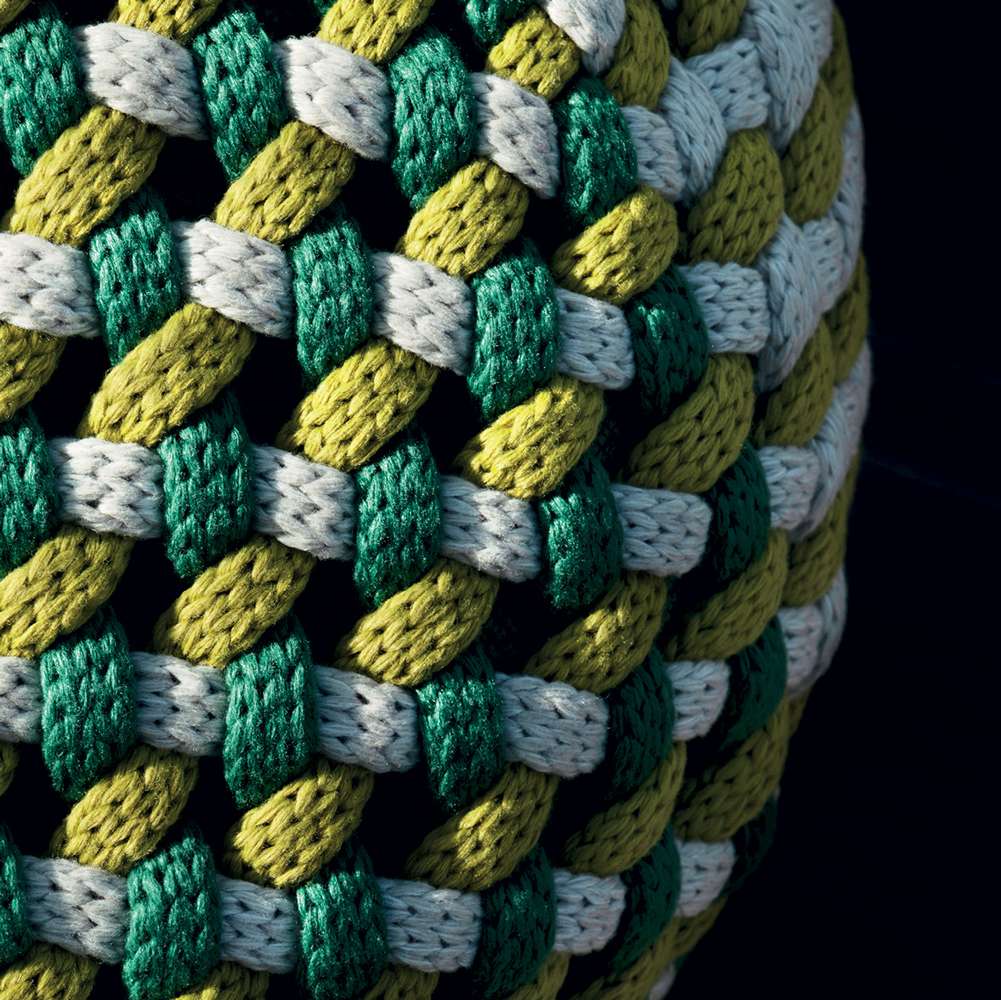 unPIZZO, a design studio and textile handicrafts laboratory specialized in interlacing for furnishing, continues its research on the revival of ancient craft techniques with Tramae, a brand new ottoman for B&B Italia. Available in three dimensions, this small object full of character stands out for its hexagonal shape, which is rounded until the edges are no longer visible. The surface shows a singular dynamic mix of materials and colors that come to life through an exclusive weave that reinterprets the tradition of wicker basket making in a contemporary key. At the end of its lifespan, Tramae can be dismantled completely so that each component can be separated and disposed of in the best way for each material.