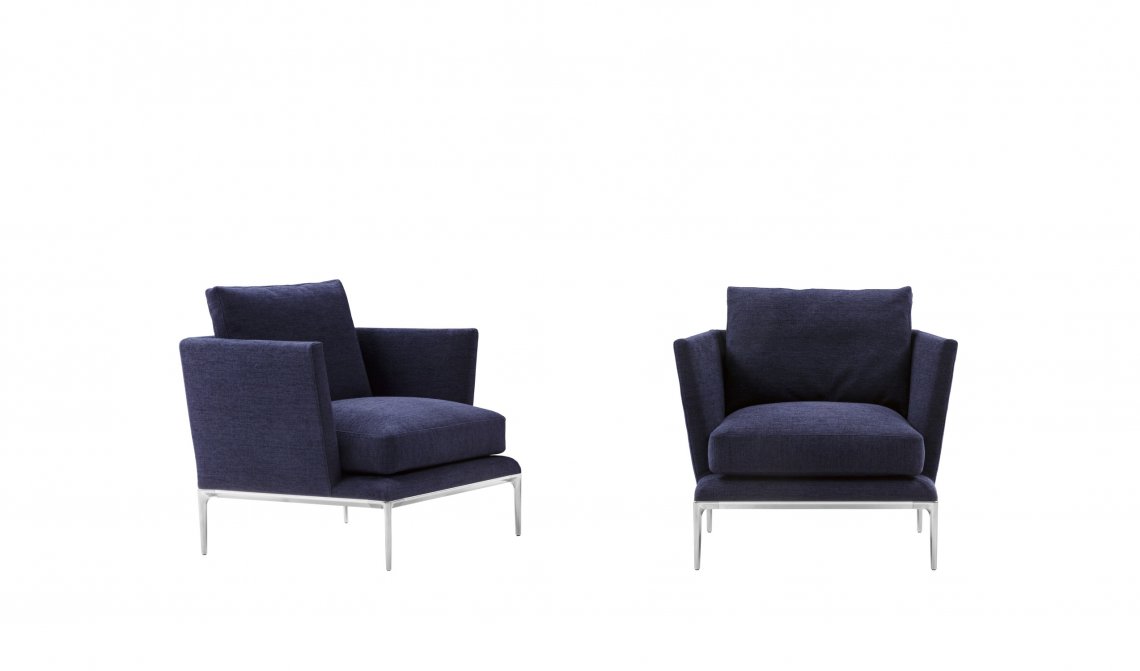 The latest addition to the B&B Atoll seating range is this new small armchair. Agile and elevated in design, its thin metal legs evoke the style of the sofa and are ideally complemented by the characteristic shape of the cushions, which harmonise linearity with softness. The backrest and seat are characterised by two soft cushions that rest on a slightly inclined frame, providing the ideal balance between comfort and functionality.