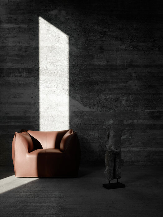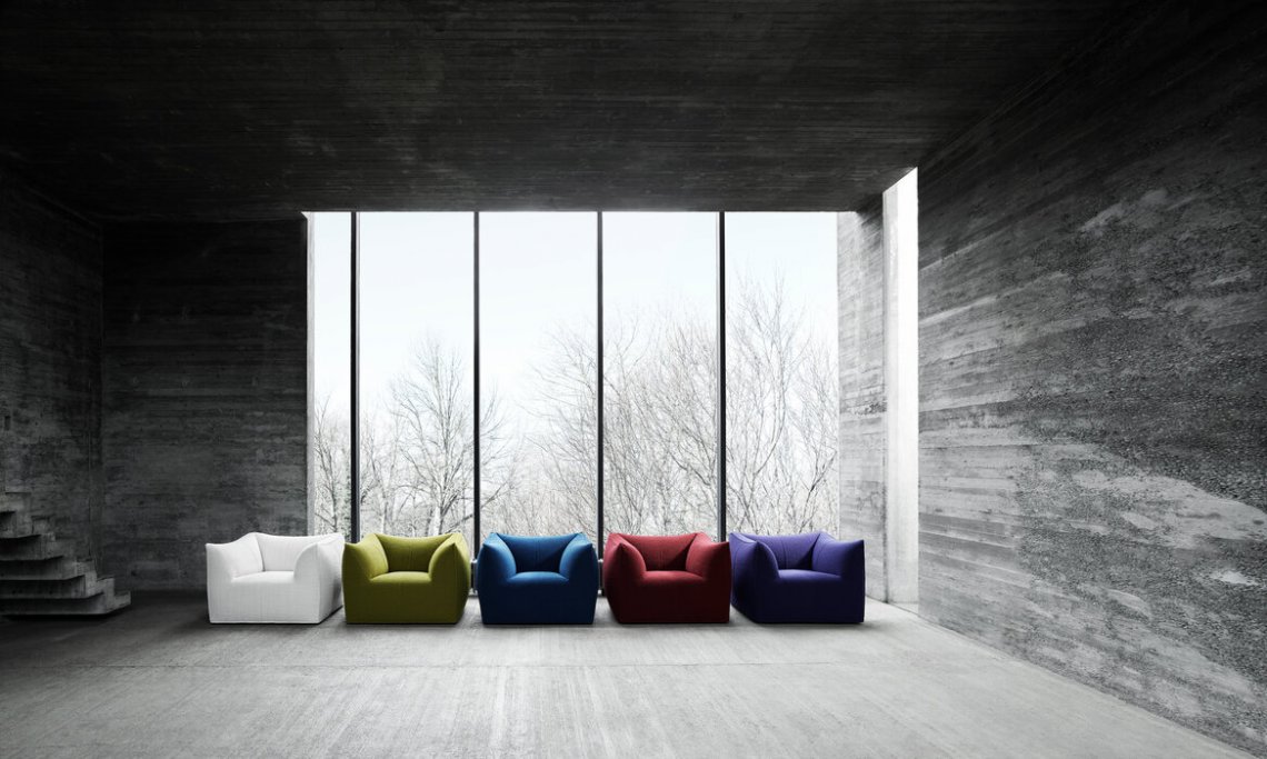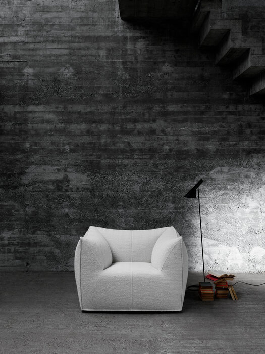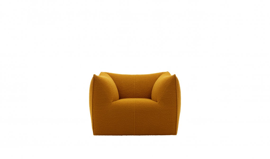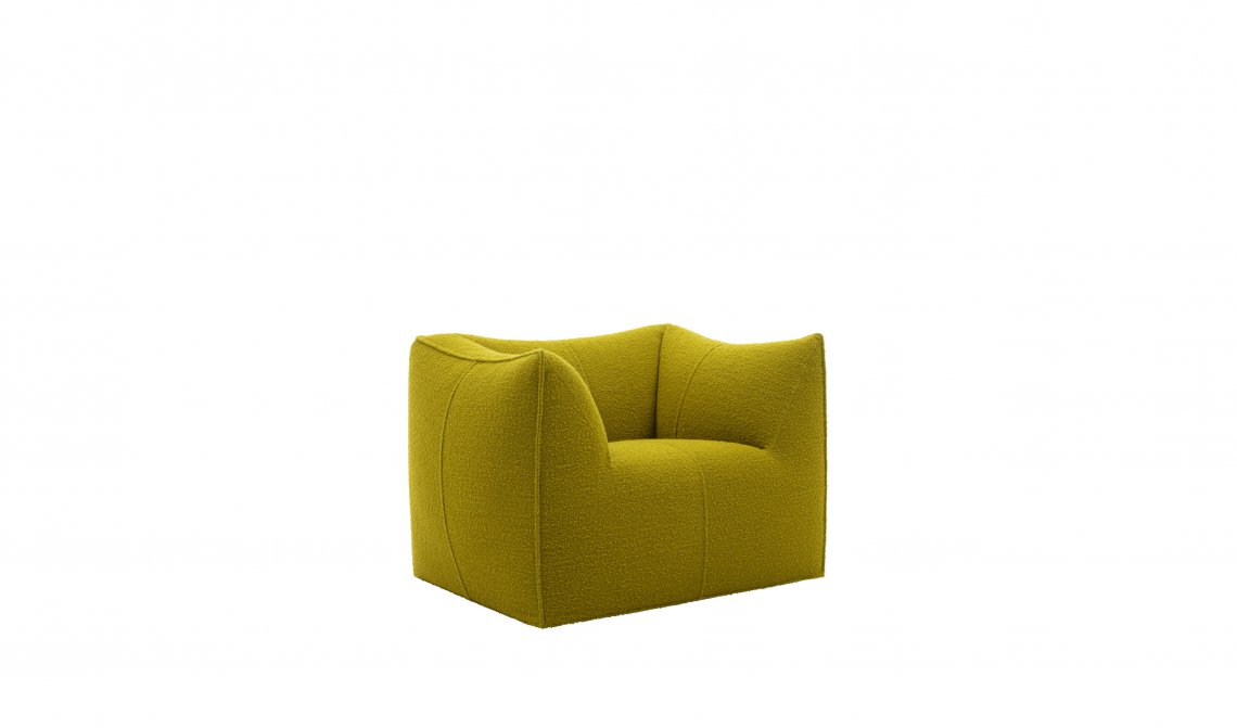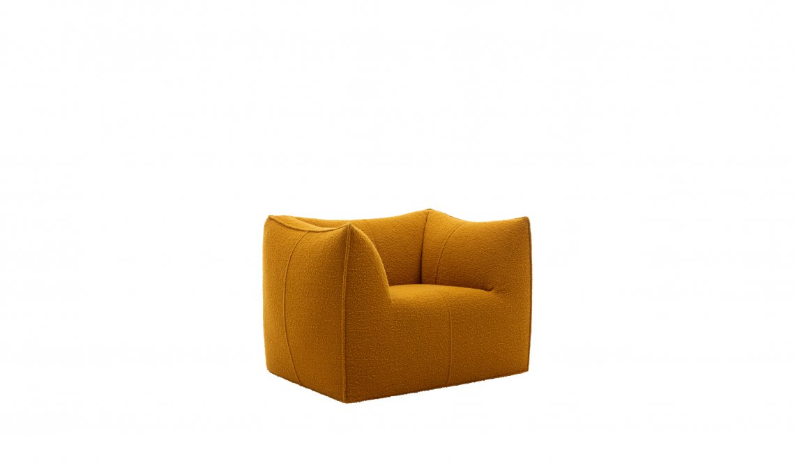 The Bambola armchair is part of Le Bambole series, originally designed in 1972, awarded with the Compasso d’Oro in 1979. Icon of timeless contemporaneity and one of the most effective expressions of Made in Italy excellence combining research and creative flair, Le Bambole have provided a very personal answer to the theme of seats. What makes them special is the apparent absence of a load bearing structure, the extreme naturalness of the shape, and the combination of comfort, softness and elasticity that their appearance conveys. Where the original construction was based on a metal structure embedded in polyurethane, now the materials used are of the latest generation, starting from recycled polyethylene gives structure. A sustainable project thanks to the choice of materials and the construction method, that allows the components of Le Bambole to be completely disassembled and therefore easily recyclable.